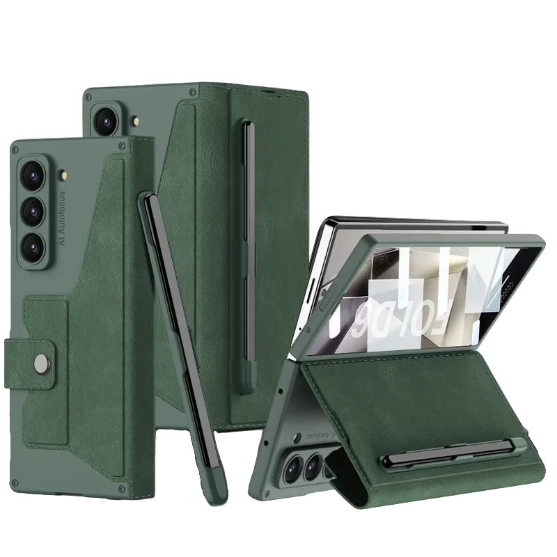 Card Holder PU Leather Case for Z Fold 7 / 6 – Screen Film, Pen Slot, Magnetic Buckle