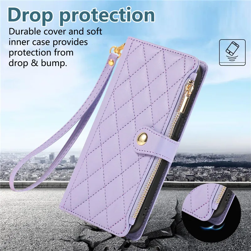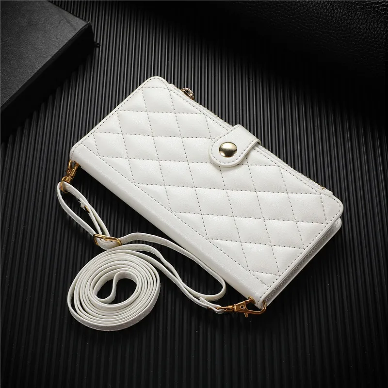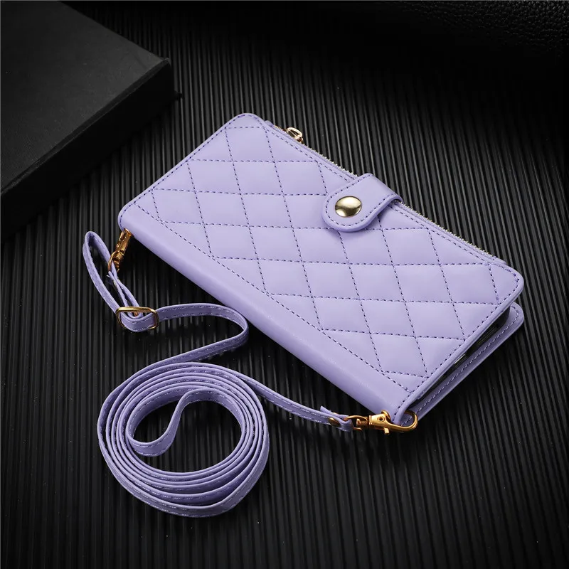 Crossbody Lanyard Leather Zip Wallet Card Slot Phone Case for Samsung Galaxy Z Fold 7 6 5 4 3 Wrist Strap Flip Stand Cover Etui