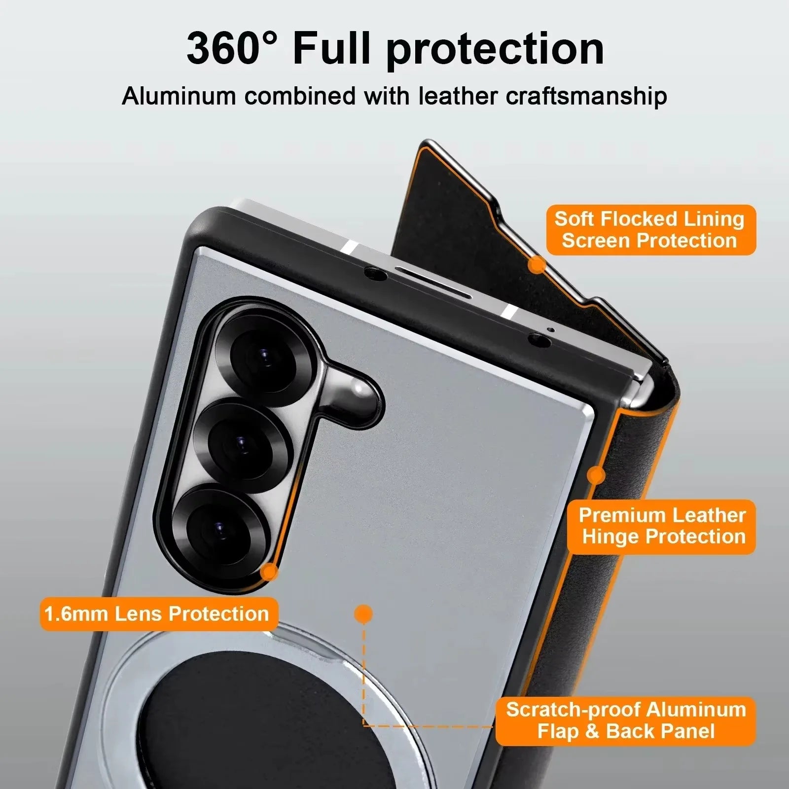 Case With Magsafe Kickstand 360° Rotatable Leather Full Body Protective Cover with Ring