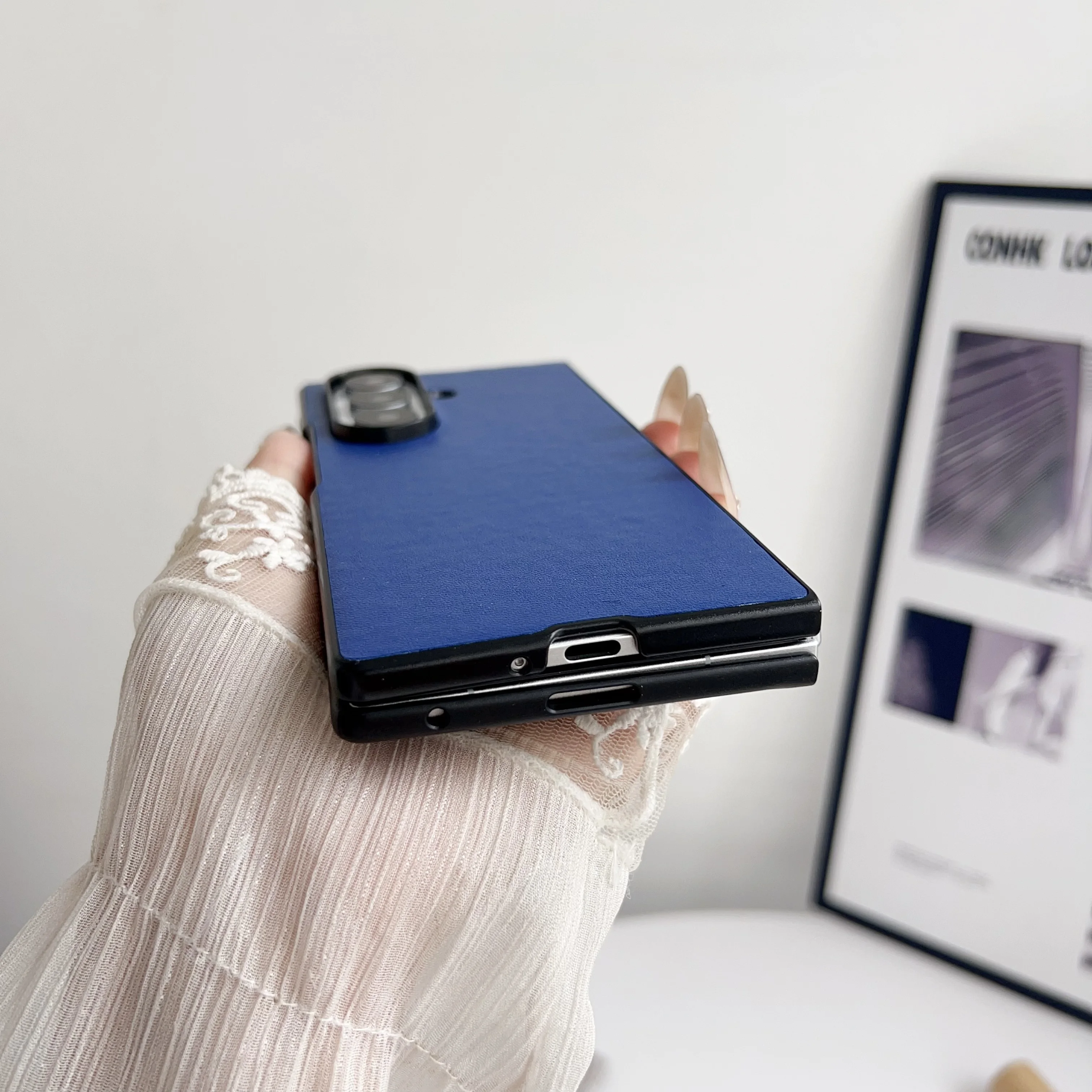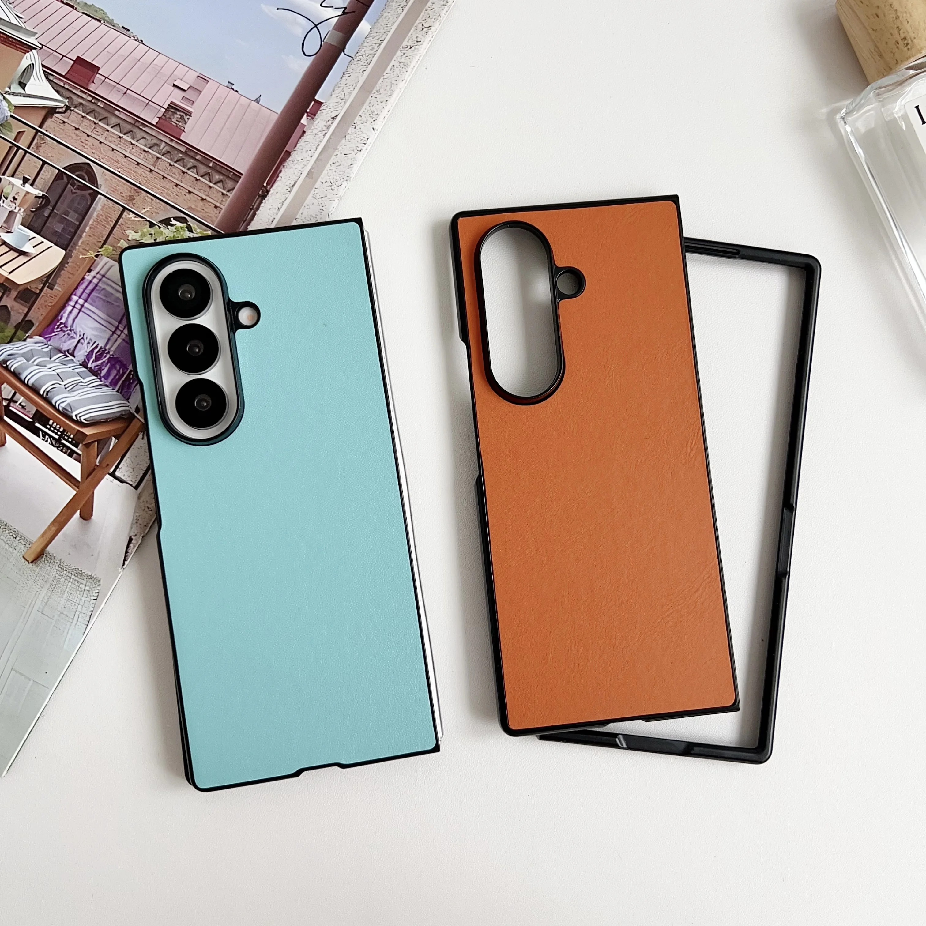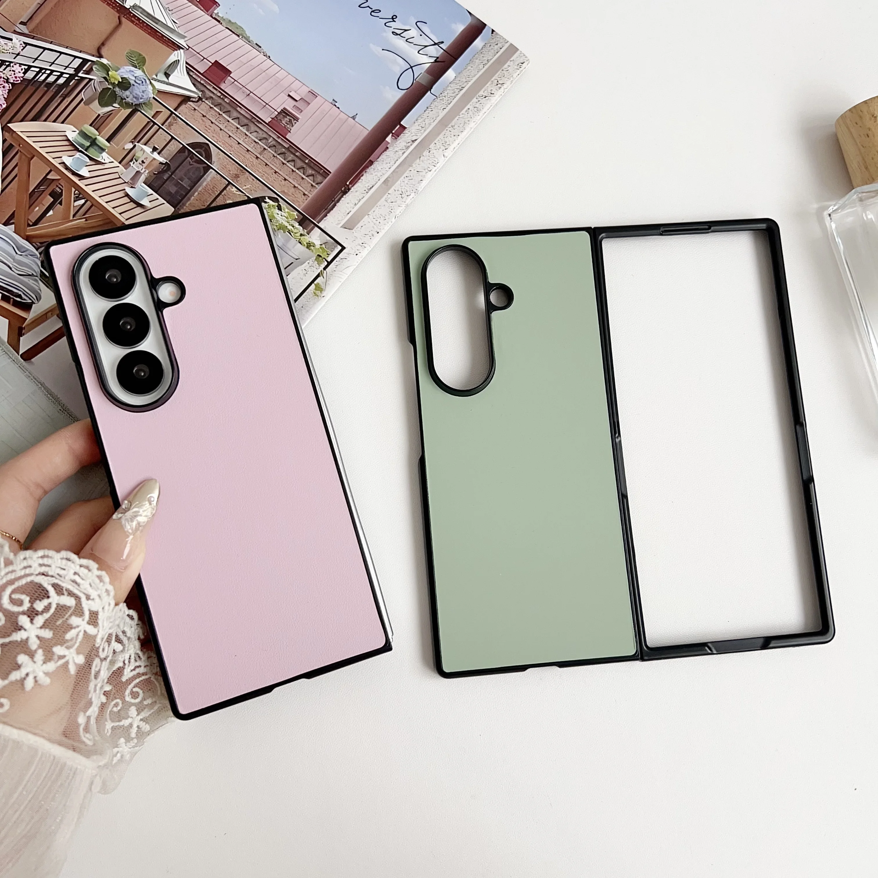 Fashion Matte Candy Color Leather Texture Case For Samsung Galaxy Z Fold 7 6 5 4 3 ZFold7 Colorful Shockproof Solid Bumper Cover