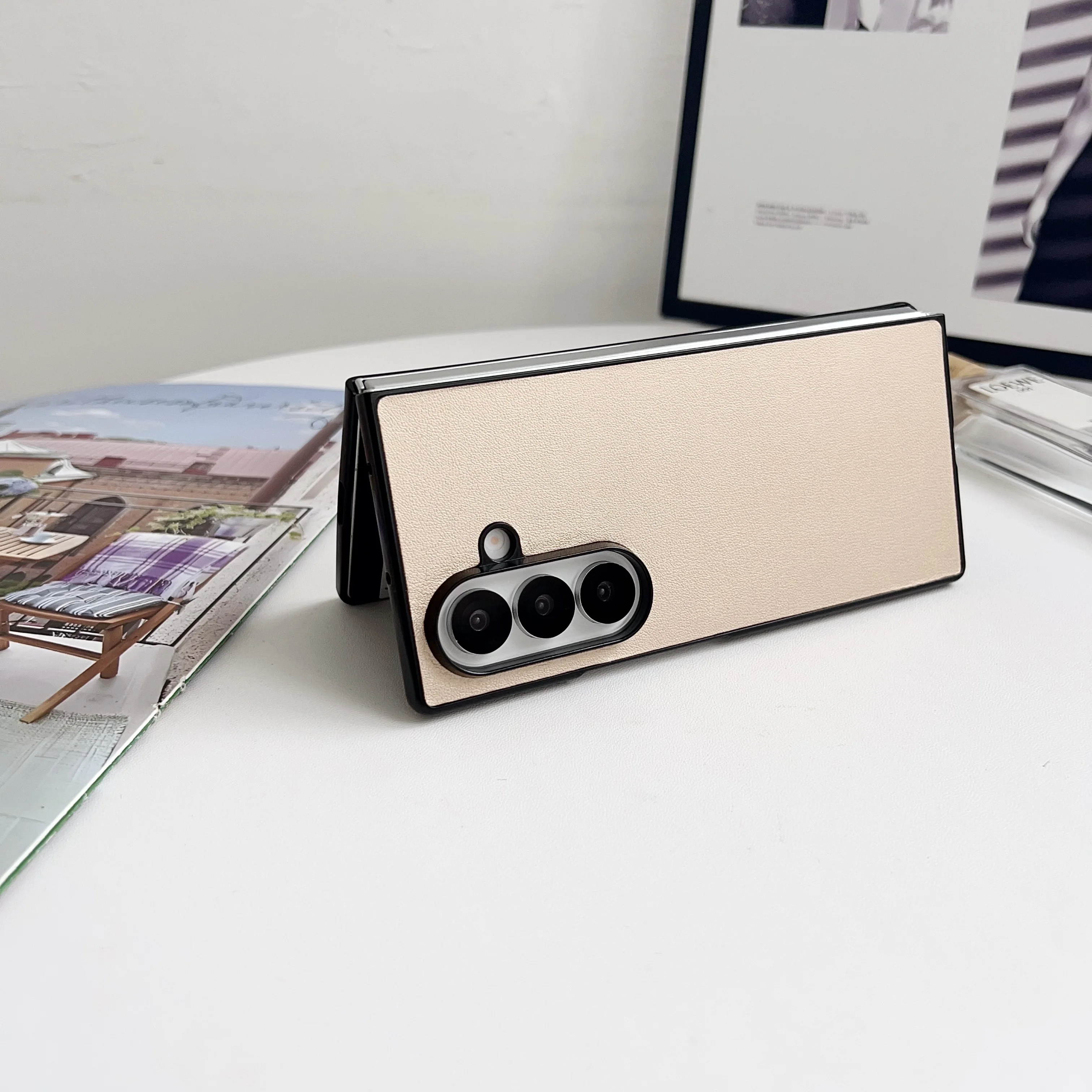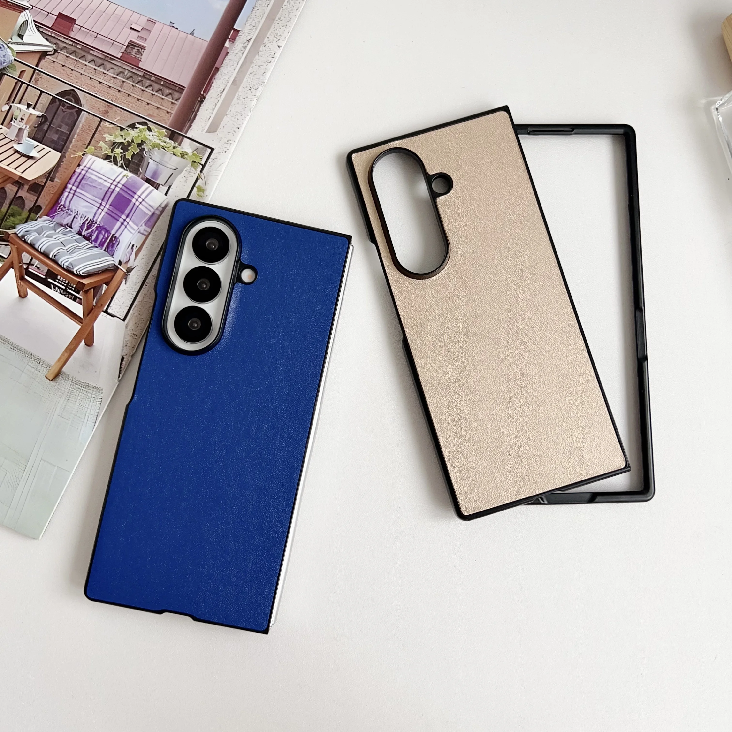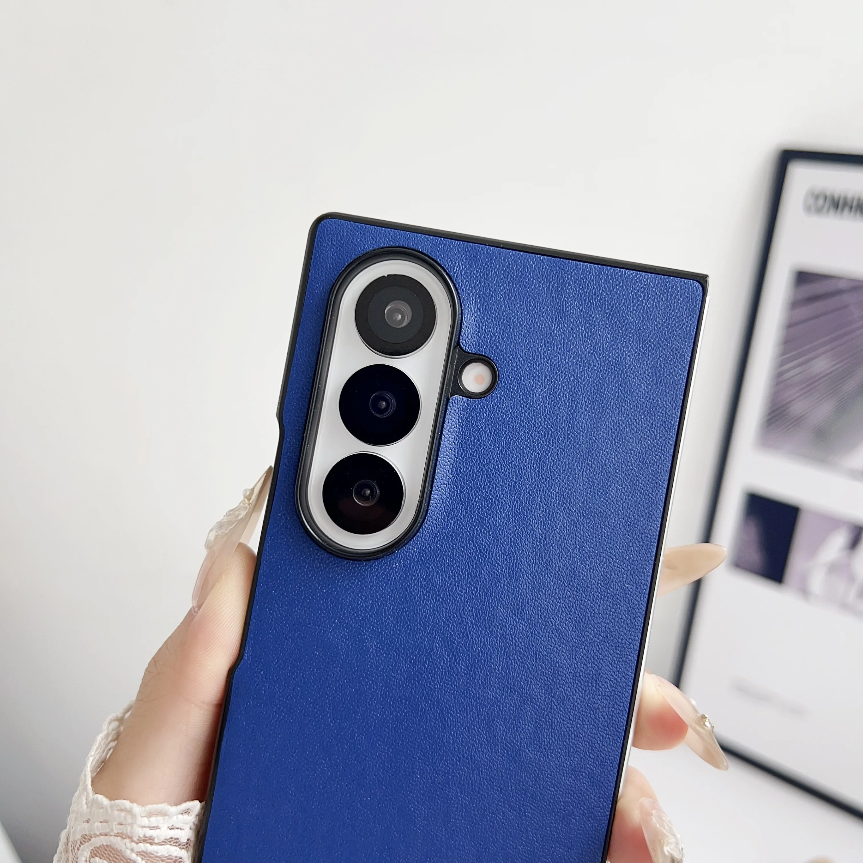 Fashion Matte Candy Color Leather Texture Case For Samsung Galaxy Z Fold 7 6 5 4 3 ZFold7 Colorful Shockproof Solid Bumper Cover