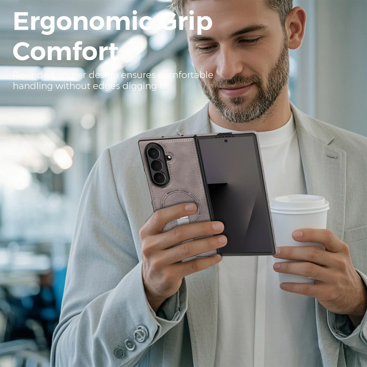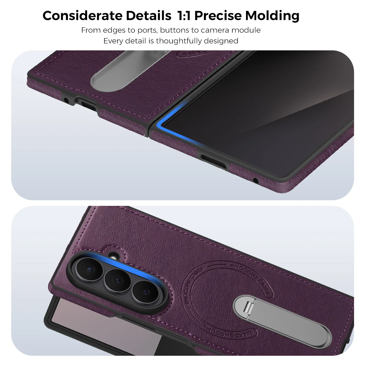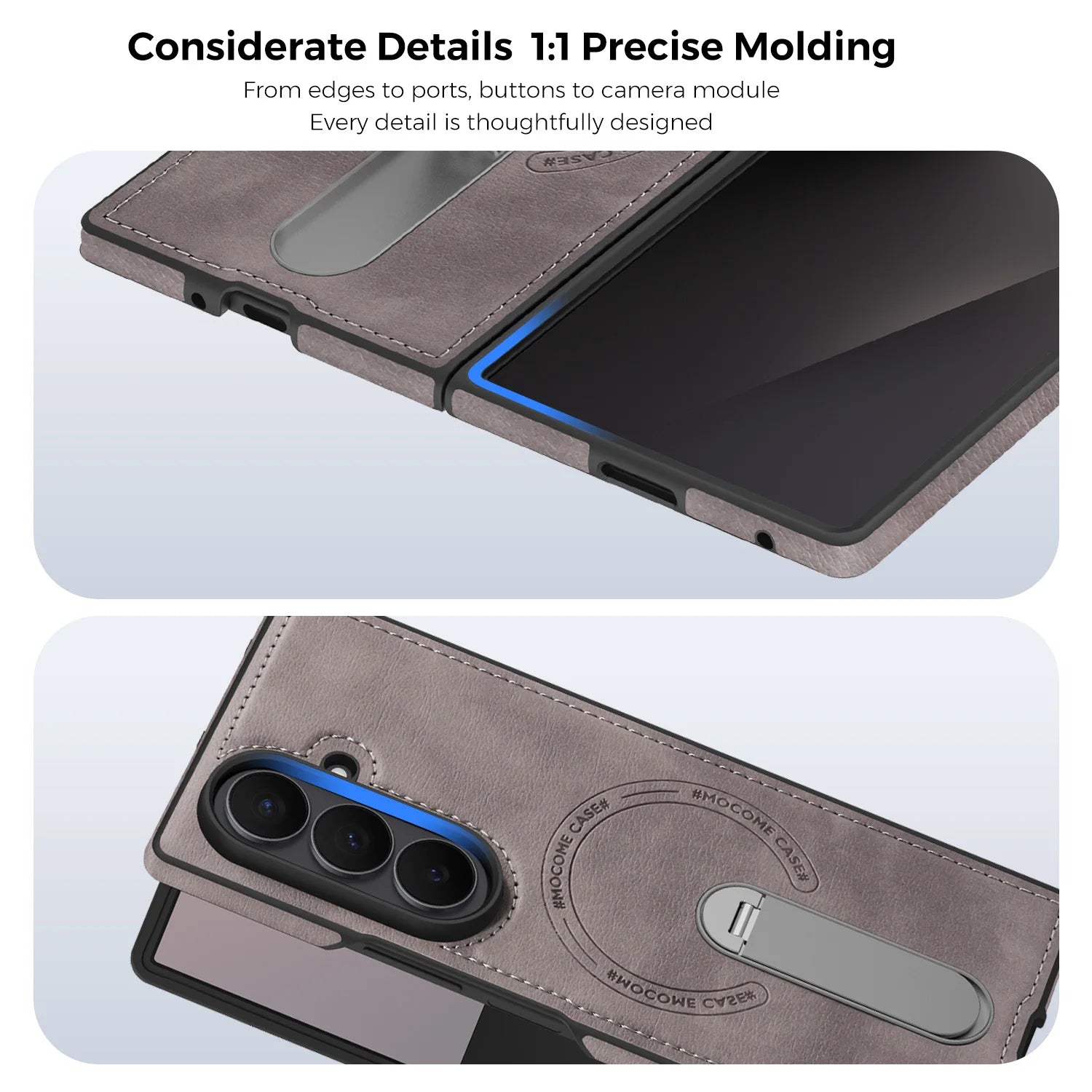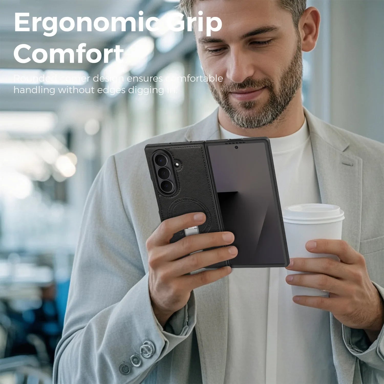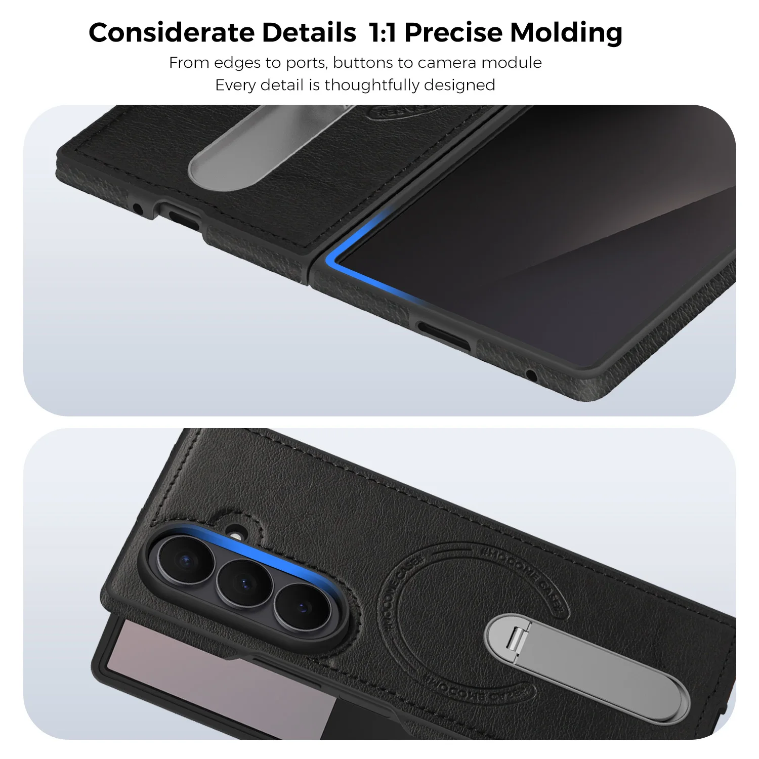 Fold 7 Strong Magnetic Phone Case for Samsung Galaxy Z Fold 7 6 5 4 3 Wireless Charging Metal Rotating Bracket Pu Leather Cover