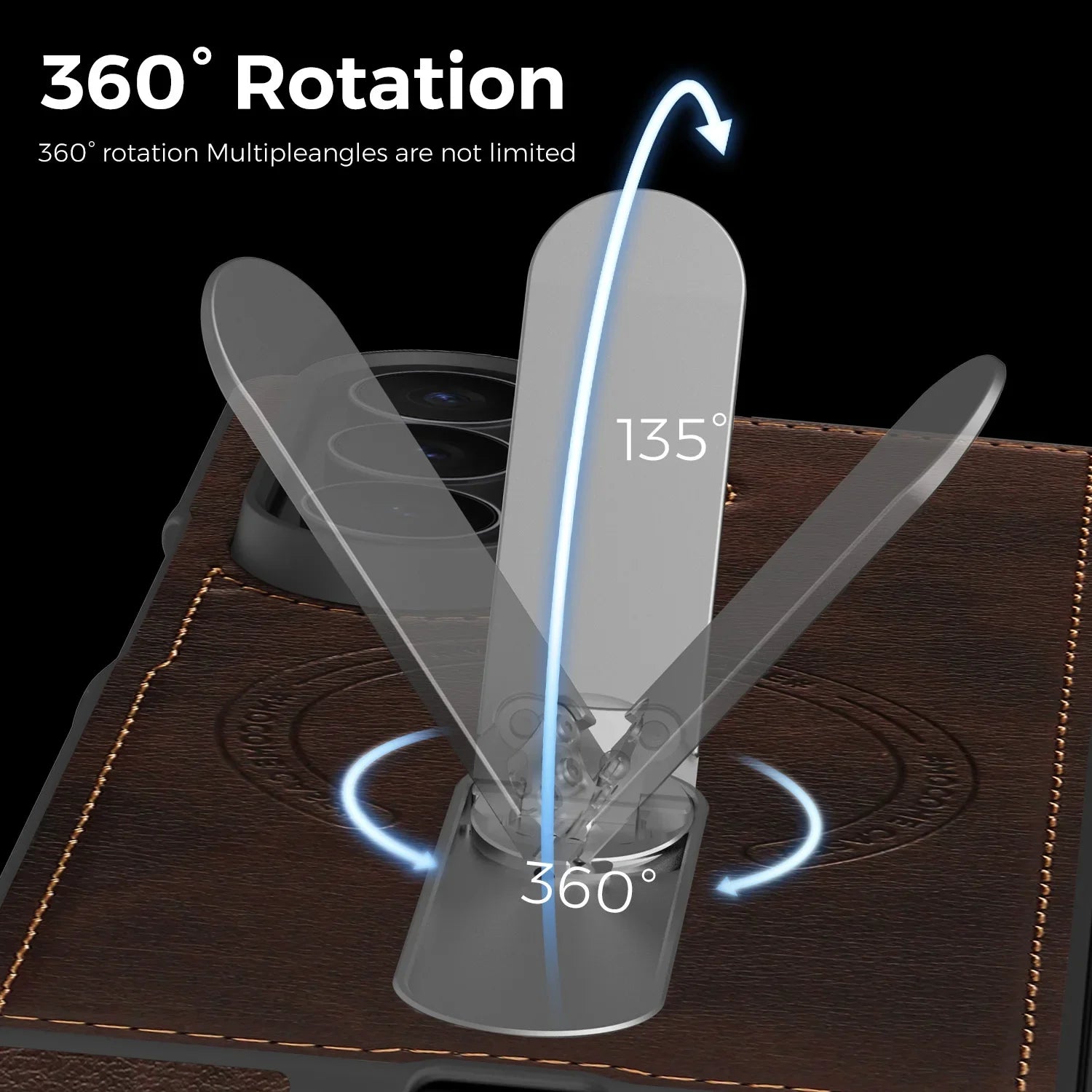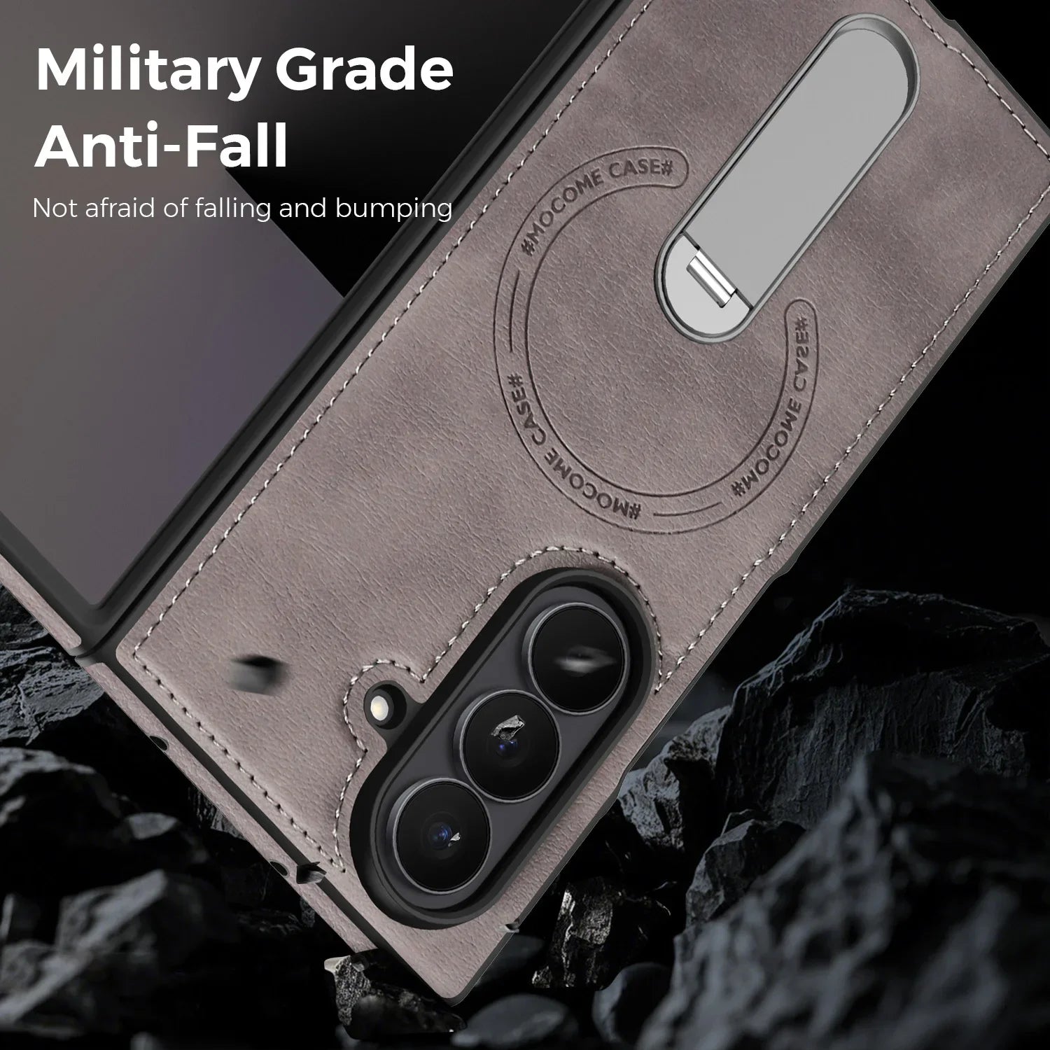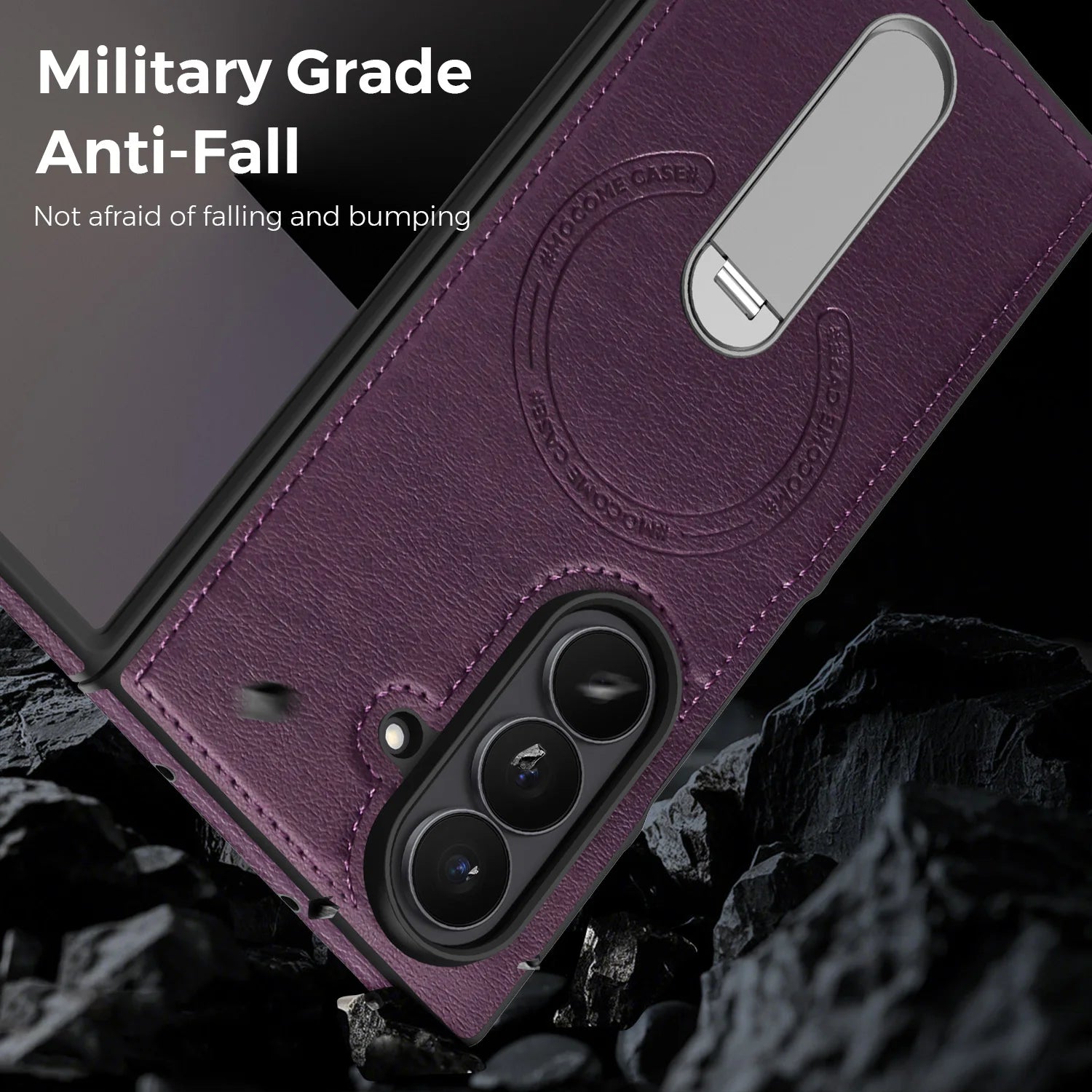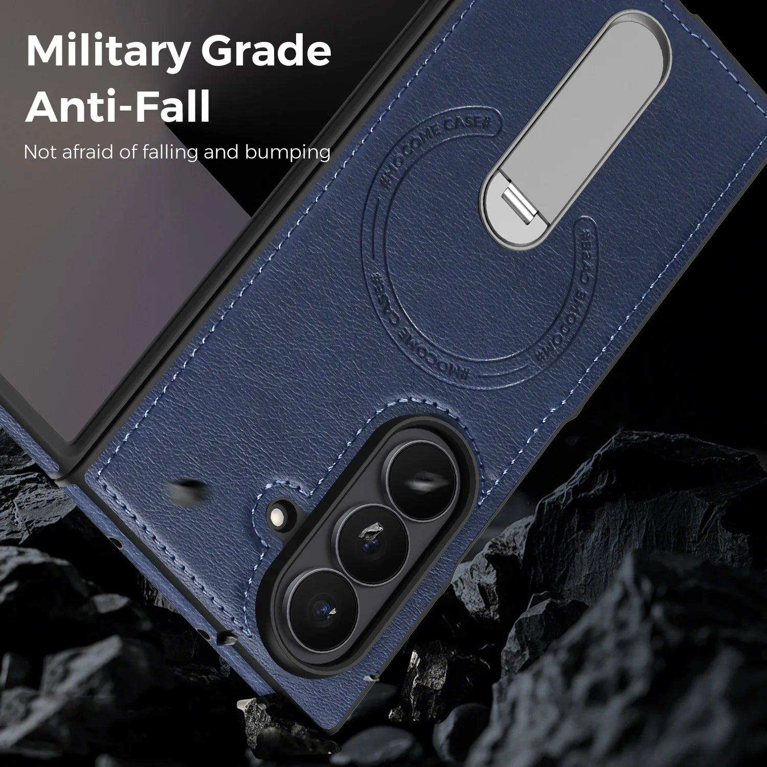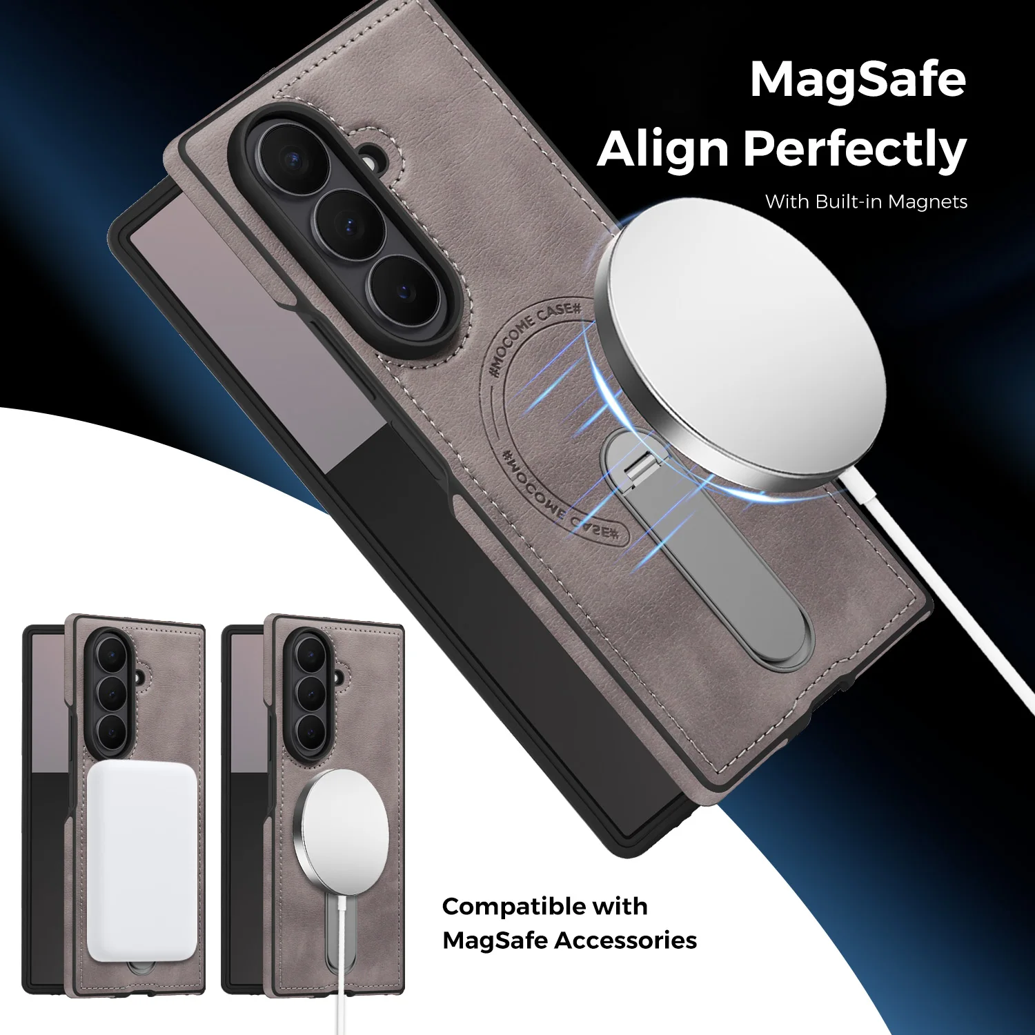 Fold 7 Strong Magnetic Phone Case for Samsung Galaxy Z Fold 7 6 5 4 3 Wireless Charging Metal Rotating Bracket Pu Leather Cover