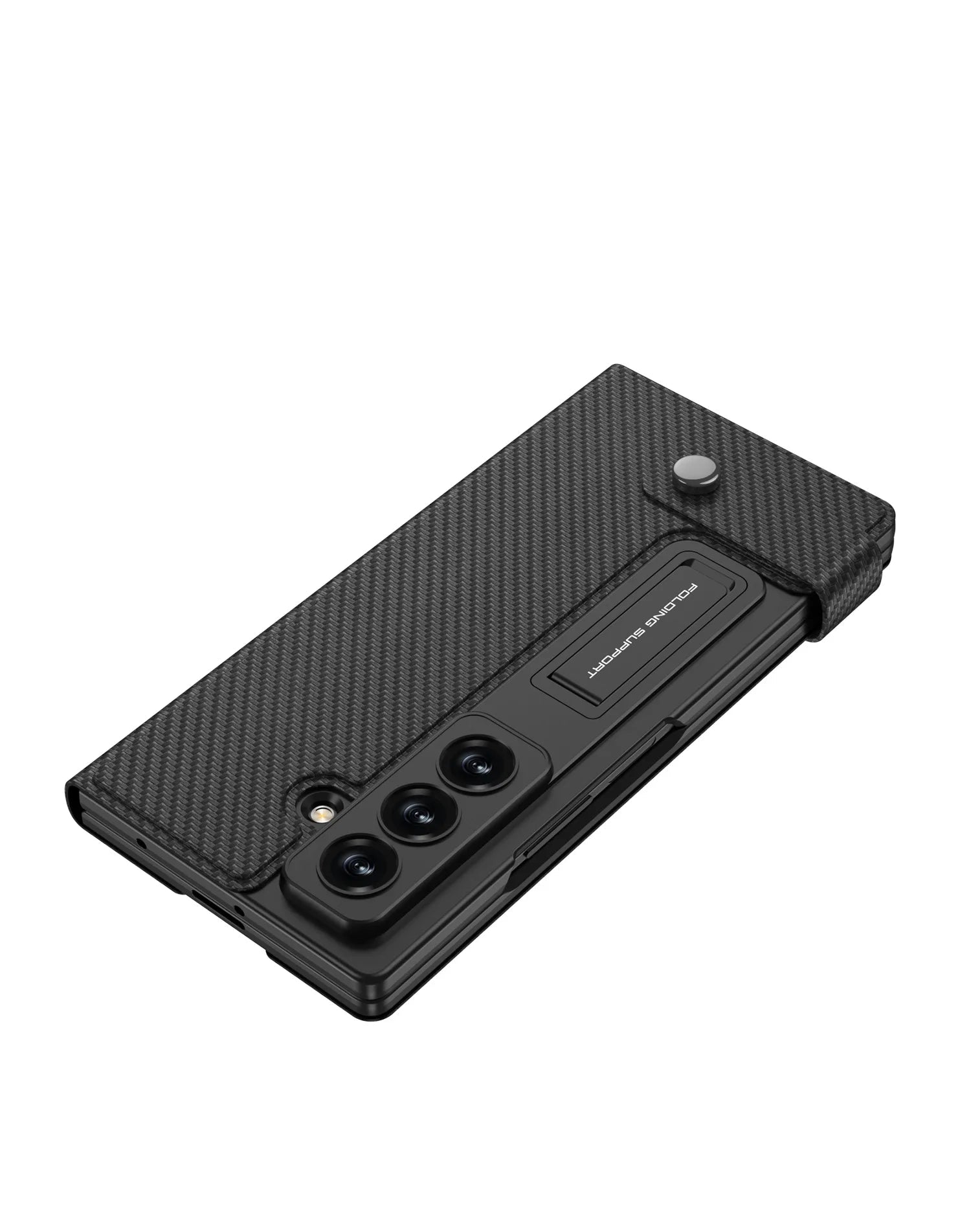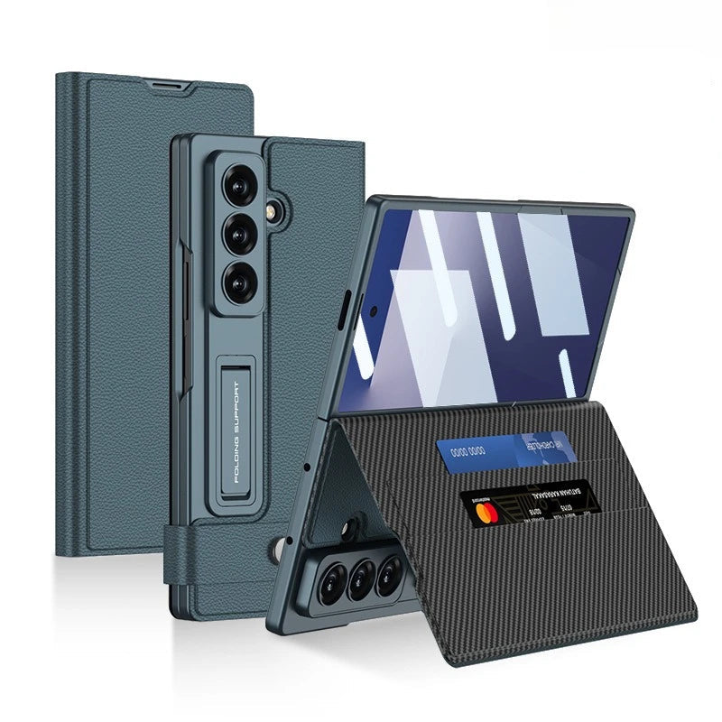 Fold7 Film+Phone Case for Samsung Galaxy Z Fold 7 Card Holder Magnetic Buckle Wallet Flip Wireless Charging Stand Leather Cover