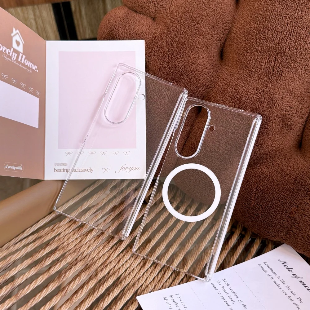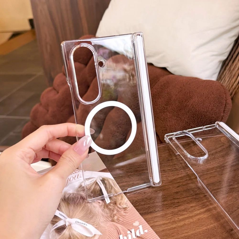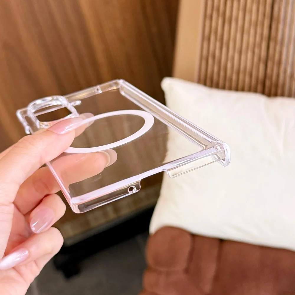 for Magsafe Transparent Hard Acrylic Case for Samsung Galaxy Z Fold 7 6 5 4 zfold Fold7 Magnetic Clear Shockproof Slim Cover