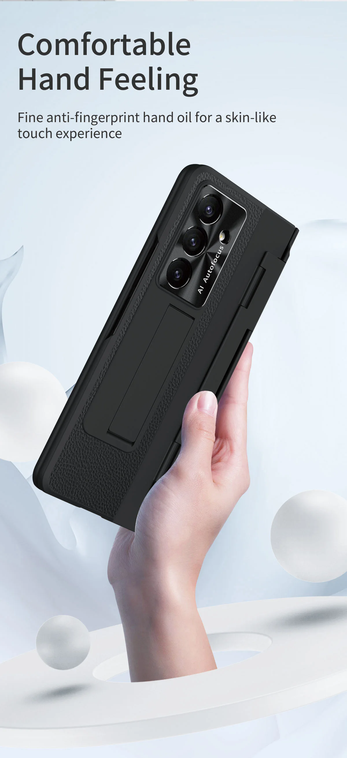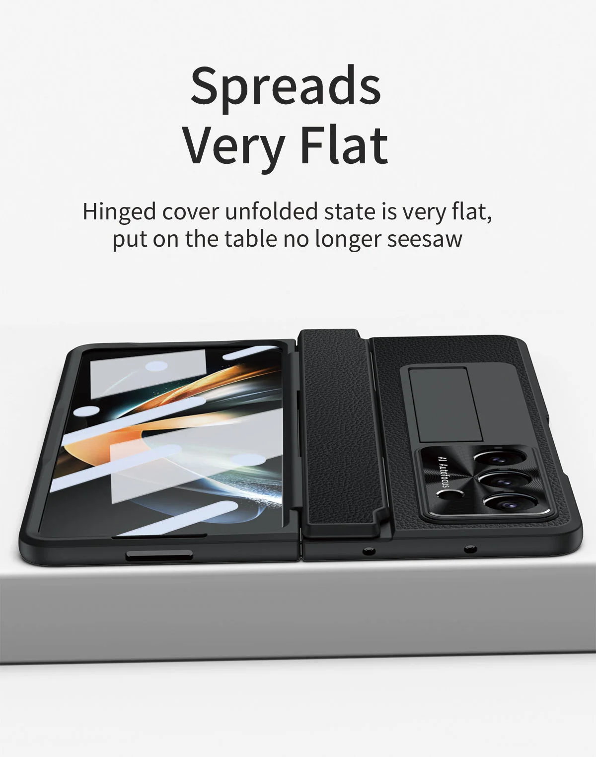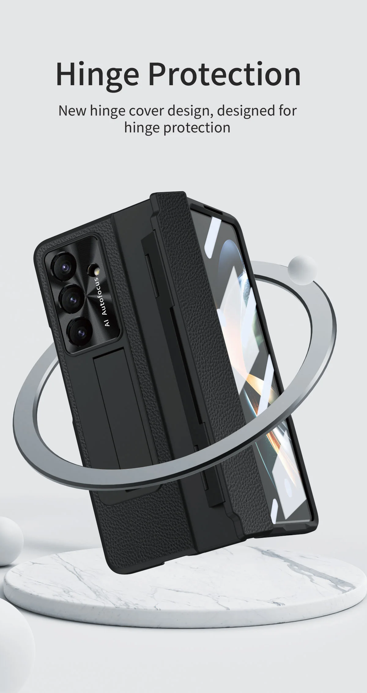 Feature 5: Luxury Leather One-Piece Plating Stand Hinge Case