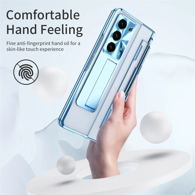 For Samsung Z Fold 5 6 Folding Armor Phantom Stand Phone Case or Samsung Z Fold 3 4 Pen Slot with Tempered Film Protective Cover
