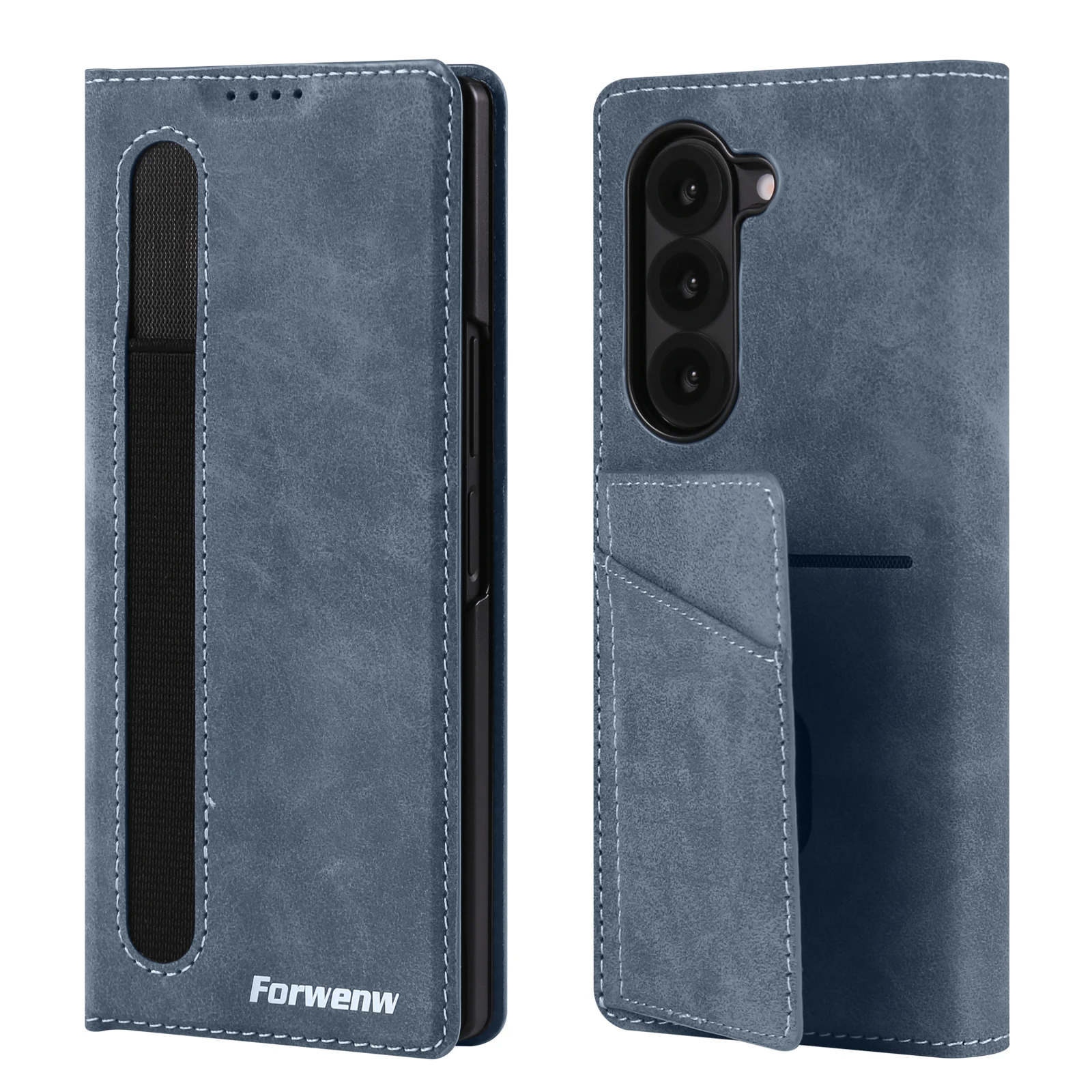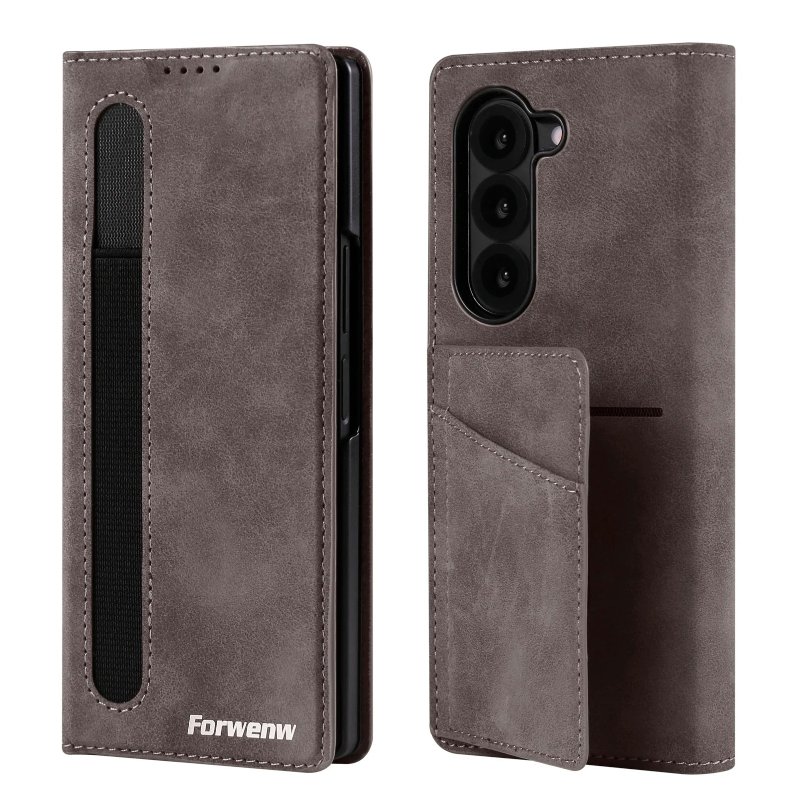 Forwenw Luxury Card Bag Holder Leather Case for Galaxy Z Fold 7 Fold 6 Fold 5 Fold 4 Fold 3 Pen Slot Holder Folding Cover Funda