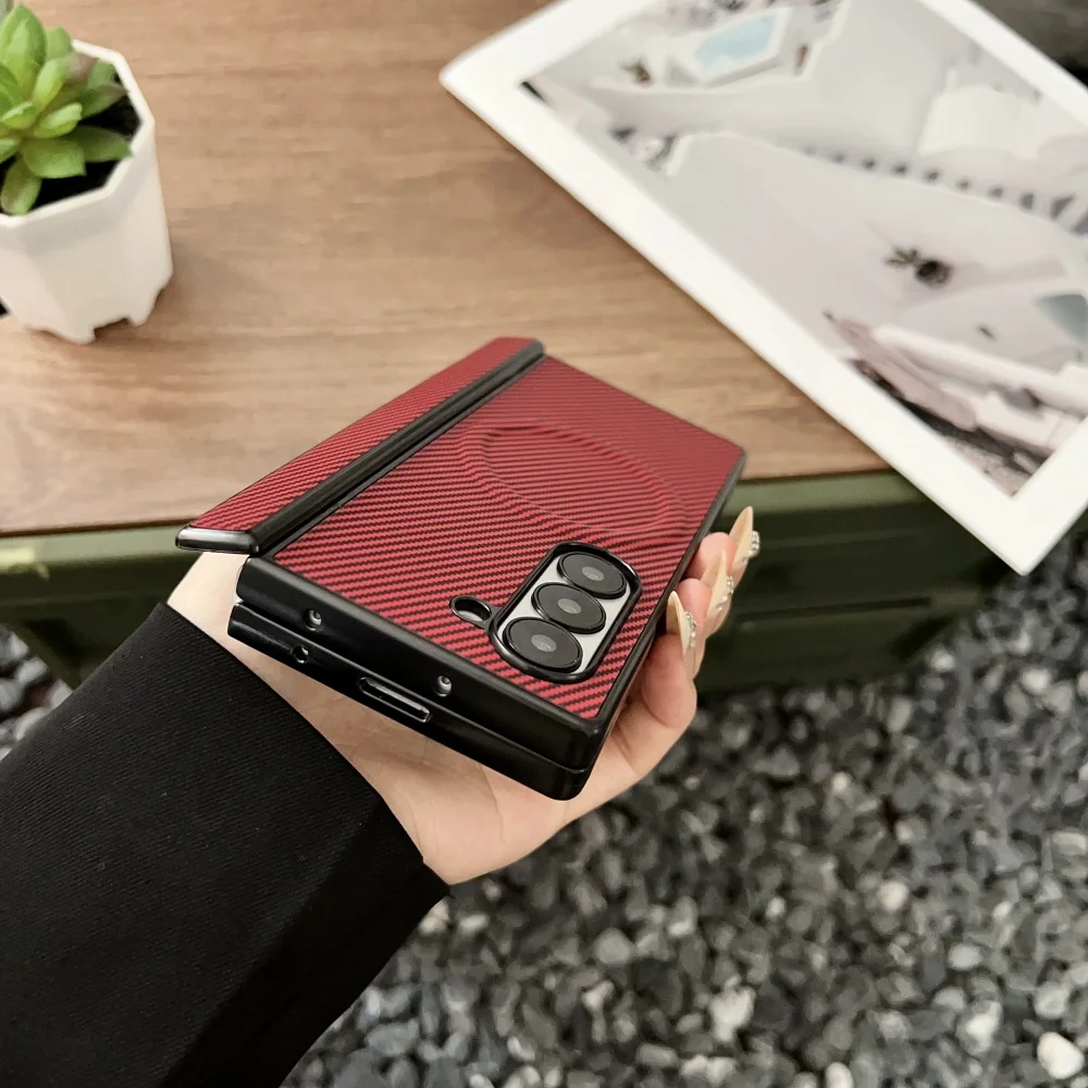 High end Carbon Fiber Magnetic Hinge Magsafe Phone Case For Samsung Galaxy Z Fold 7 6 5 4 3 5g Wireless Charging Bumper Cover