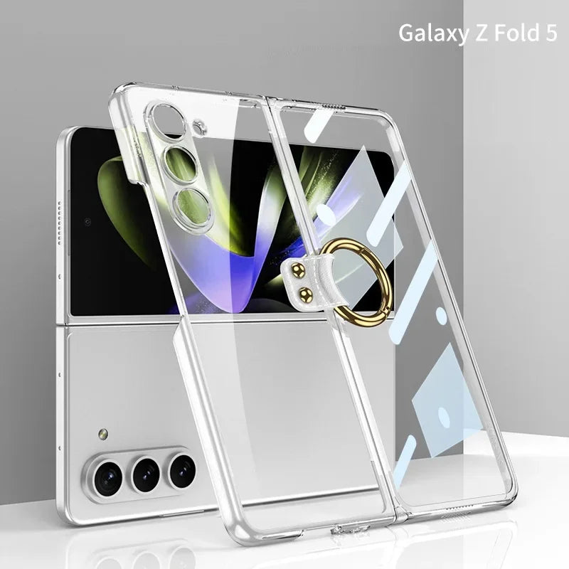 Plating Transparent Case for Galaxy Z Fold 6 / 5 – Shockproof with Metal Ring