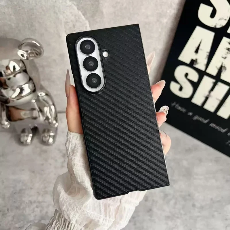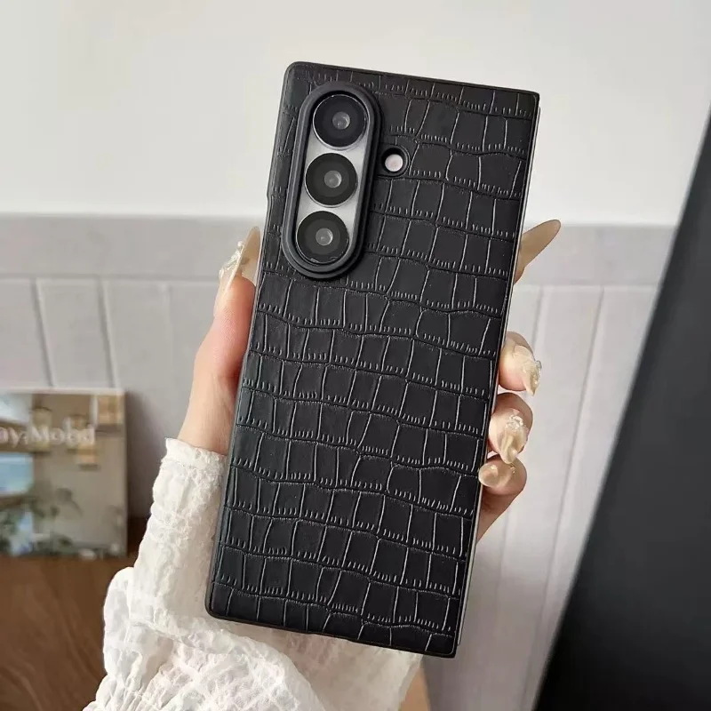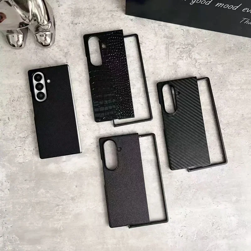 Leather Case For Samsung Galaxy Z Fold 7 6 5 4 3 Z Flip 7 6 5 4 3 Carbon Fiber Saffiano Crocodile Lychee Cover Wireless Charging