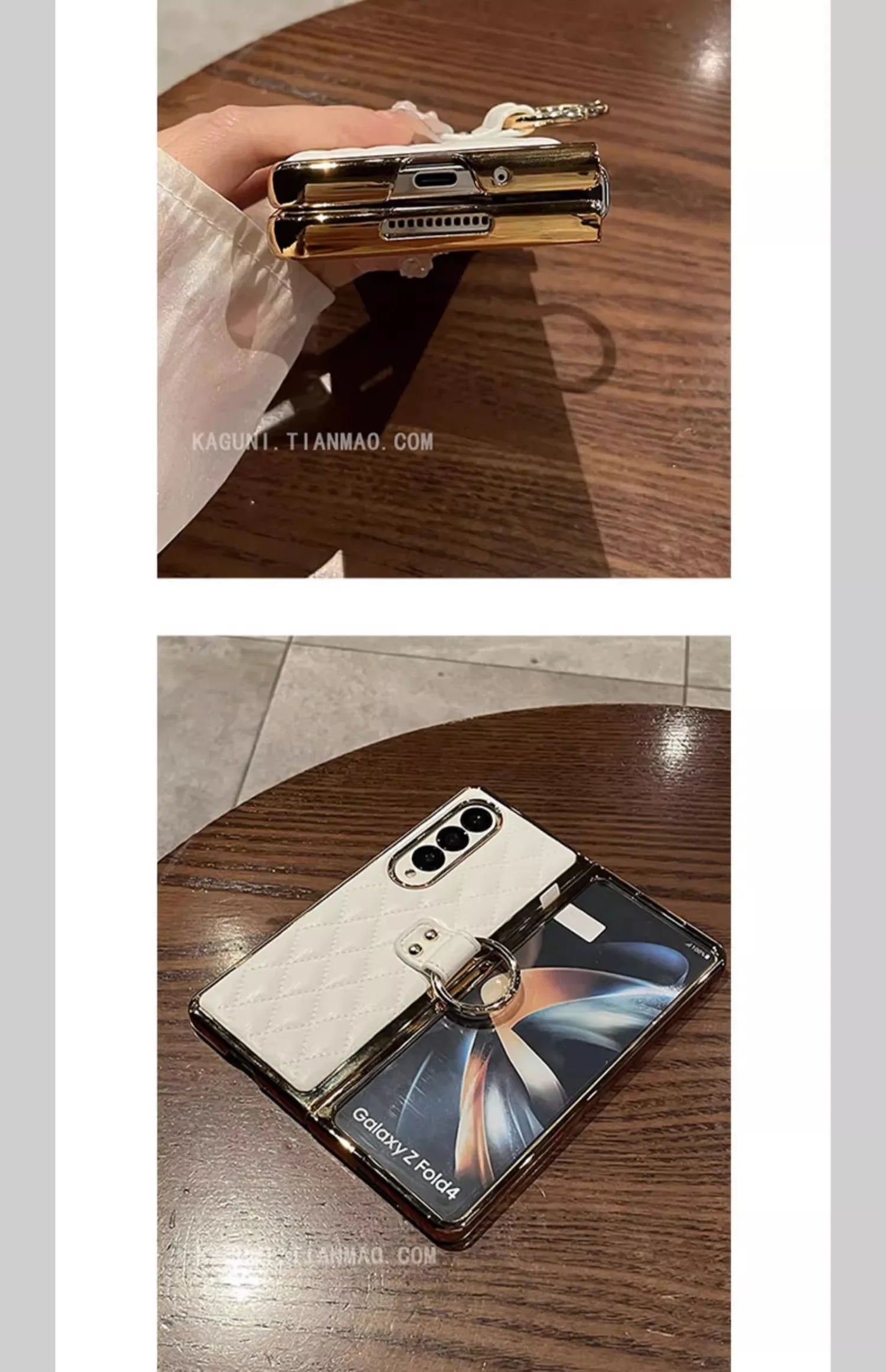 Leather Case with Ring Screen Protector for Samsung Galaxy Z, Fold 5, 6, 7 Z Fold 3, 4, Luxury Phone Case, Plating, Woman, Girl