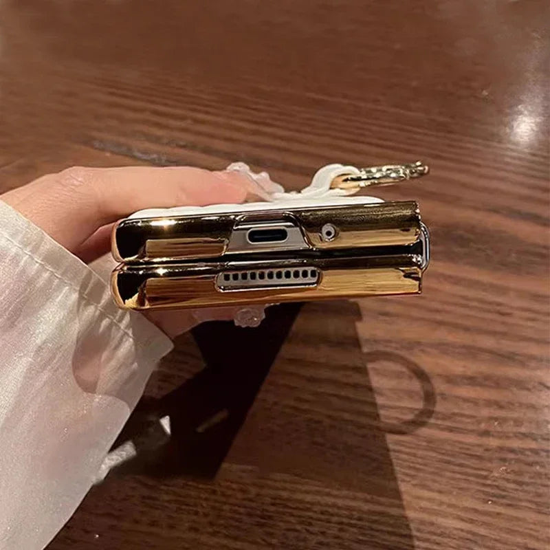 For Samsung Galaxy Z Fold 3 Z Fold 4 5G Leather Case With Ring Screen Protector Plating Woman Girl Luxury Phone Case For Z Fold 5 6