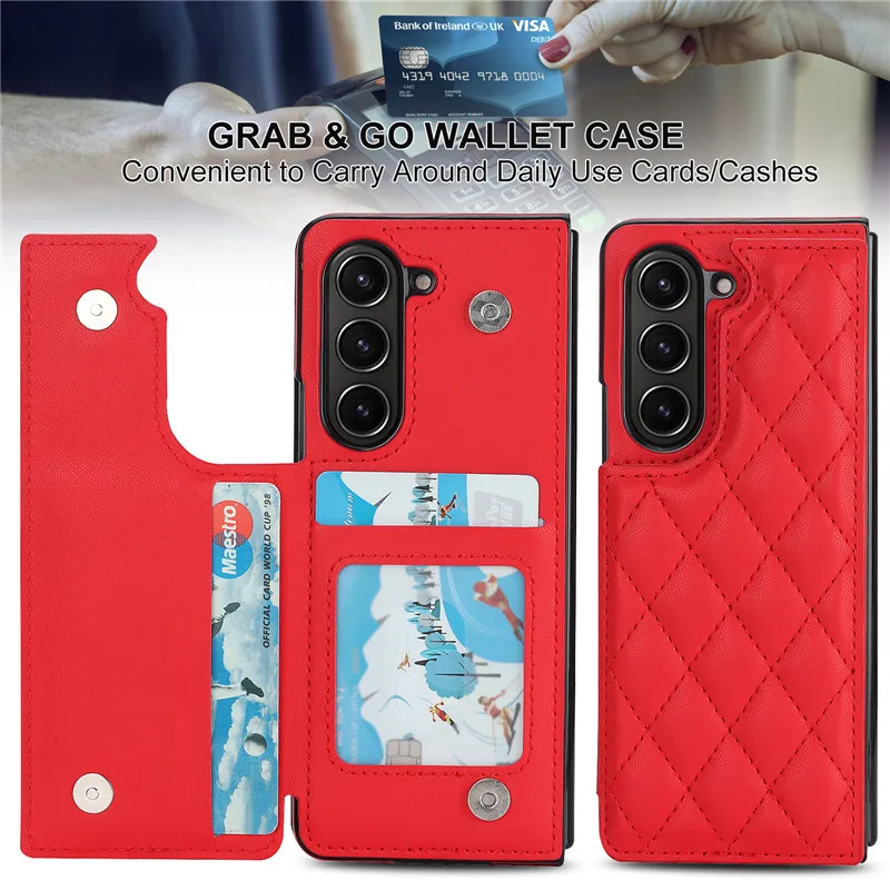 Leather Wallet Card Phone Case for Samsung Galaxy Z Fold 6 5 4 3 Fold6 Fold5 Fold4 Fold3 Shockproof Flip Stand Cover Hoesje Etui