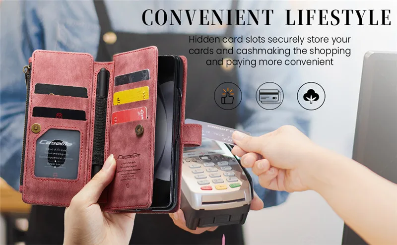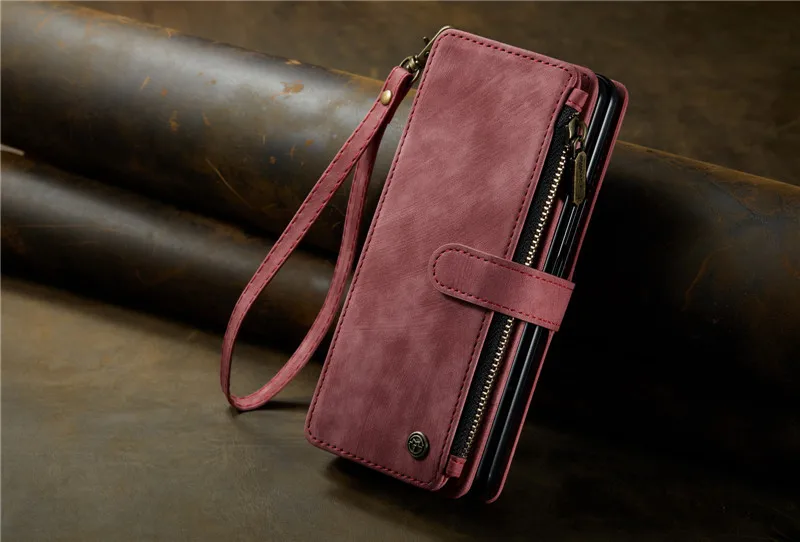 Luxury Lanyard Leather Zipper Wallet Card Phone Case For Samsung Galaxy Z Fold 7 6 5 4 Fold6 Fold5 Fold4 Purse Flip Stand Cover