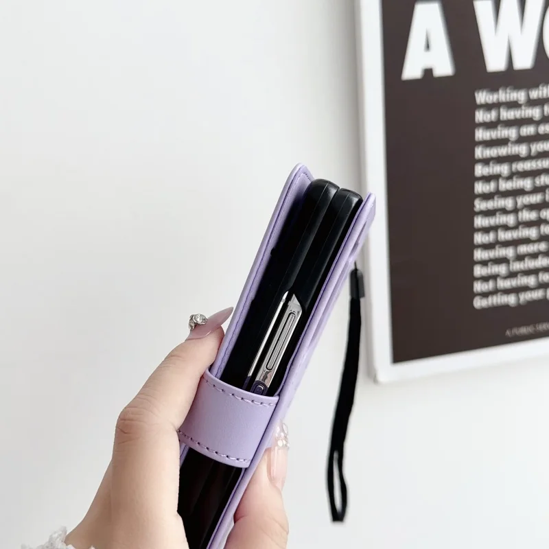 Luxury Leather Flip Purse Holder Phone Case For Samsung Galaxy Z Fold 7 6 5 4 3 Fold7 Fold6 Fold5 Wallet Card Cover Back Bag