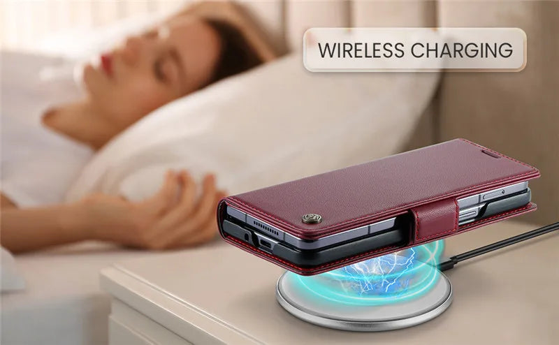 Luxury Magnetic Leather Wallet Multi Card Phone Case for Samsung Galaxy Z Fold 7 6 5 Fold6 Fold5 Shockproof Stand Cover Back Bag