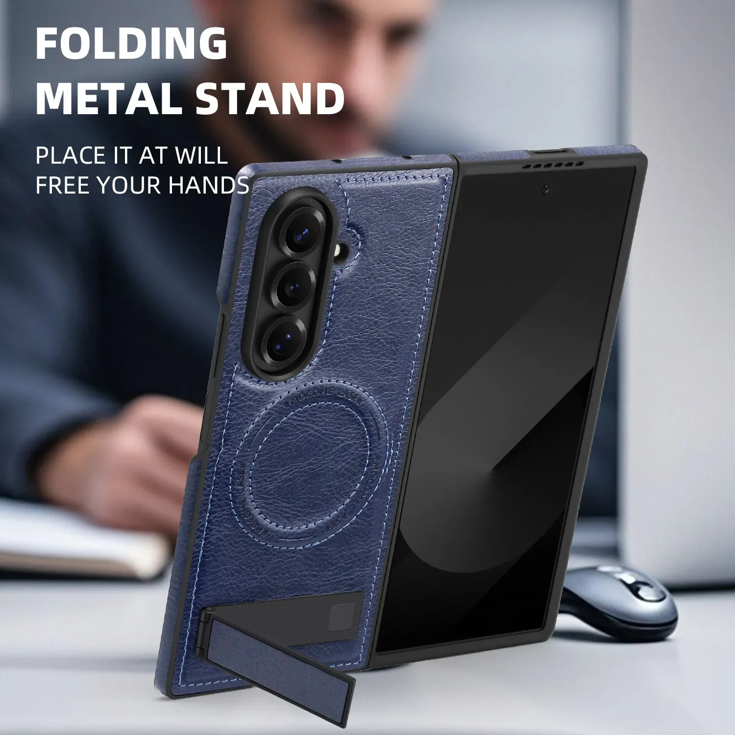 Magnetic Charging Phone Case for Samsung Galaxy Z Fold 7 Fold6 5 4 3 Invisible Bracket Anti Drop Auto Leather Protective Cover