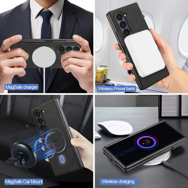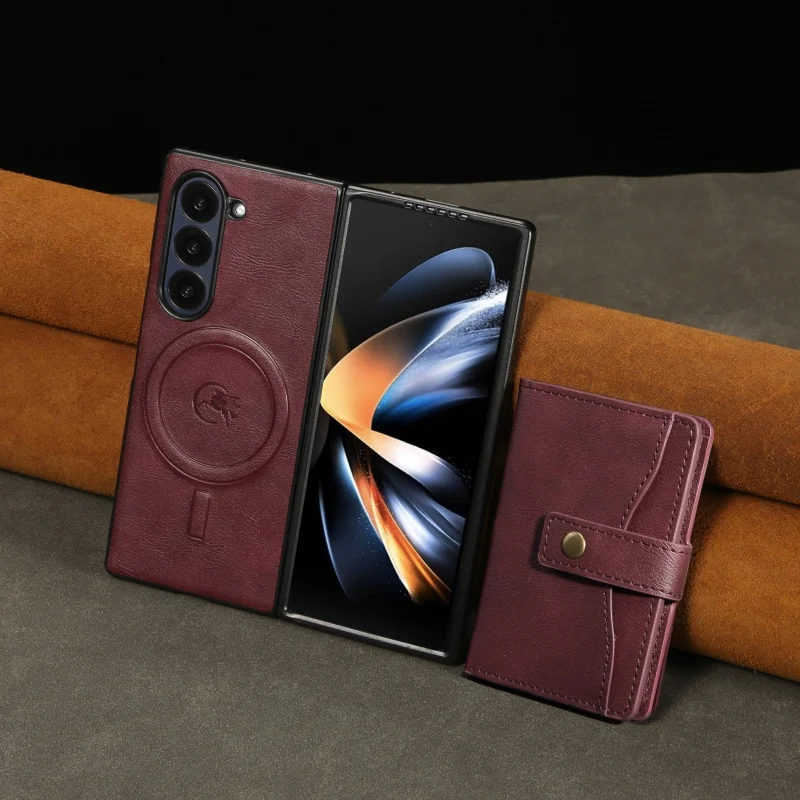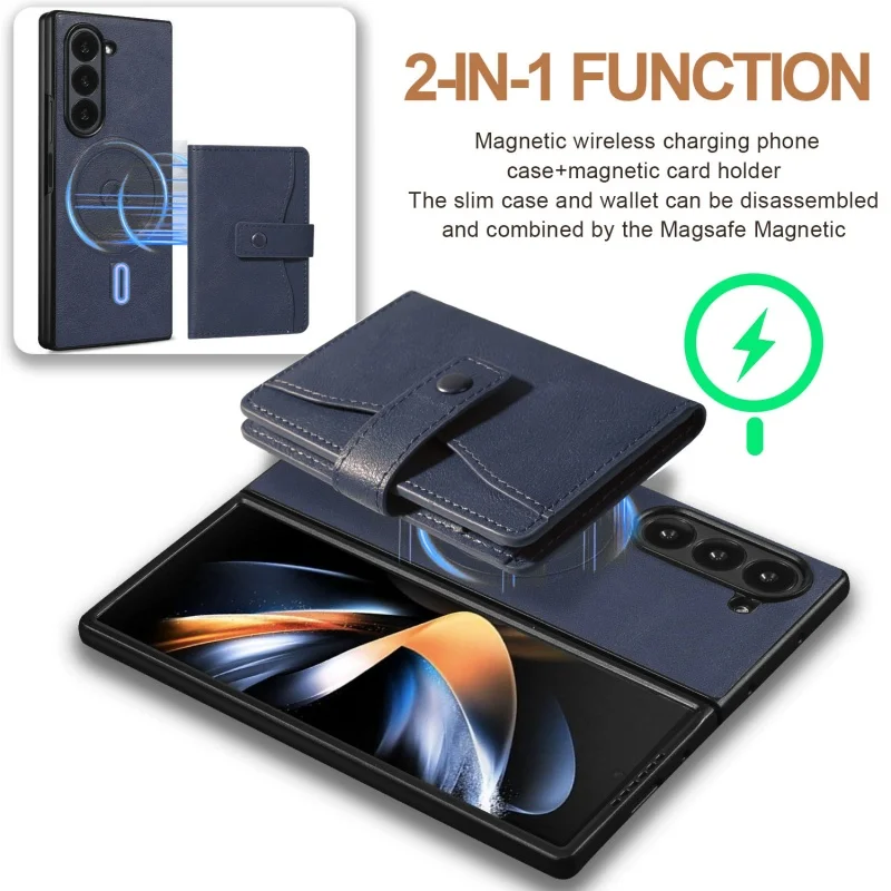 MagSafe Wireless Charging Wallet Card Phone Case For Samsung Galaxy Z Fold 7 6 5 4 3 Fold7 Fold6 Fold5 Flip Purse Holder Cover