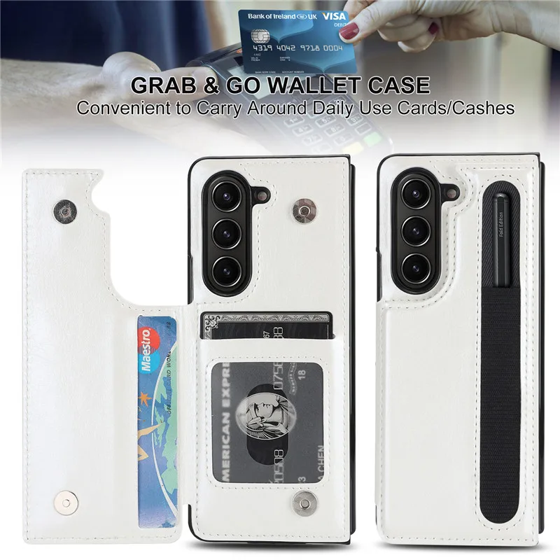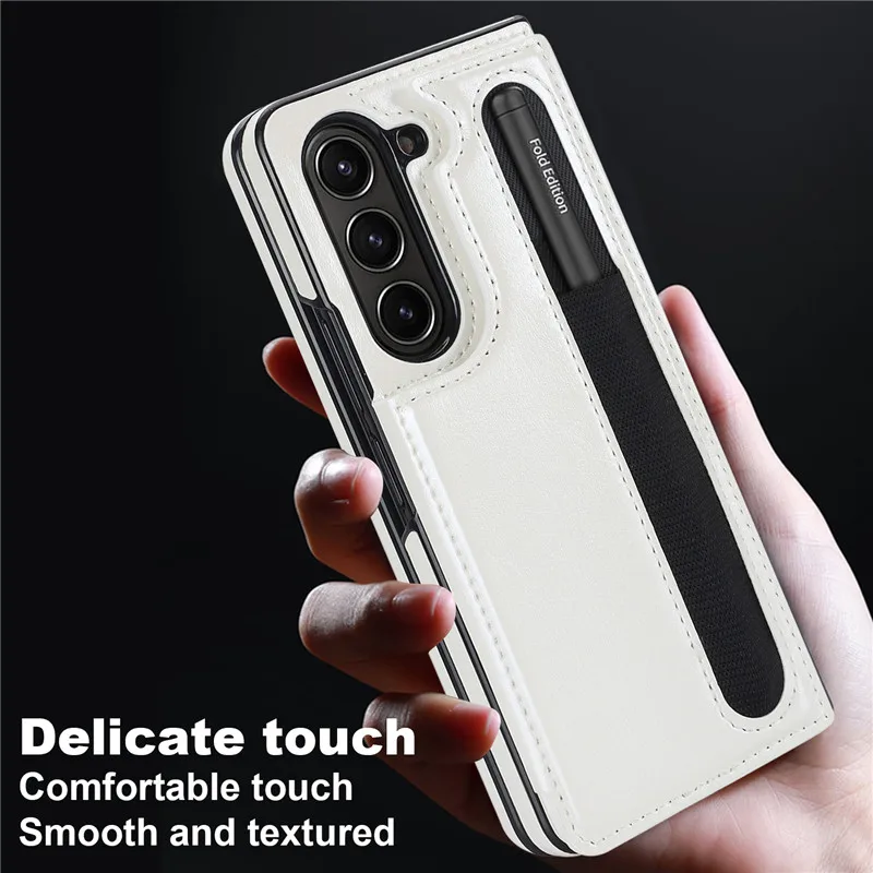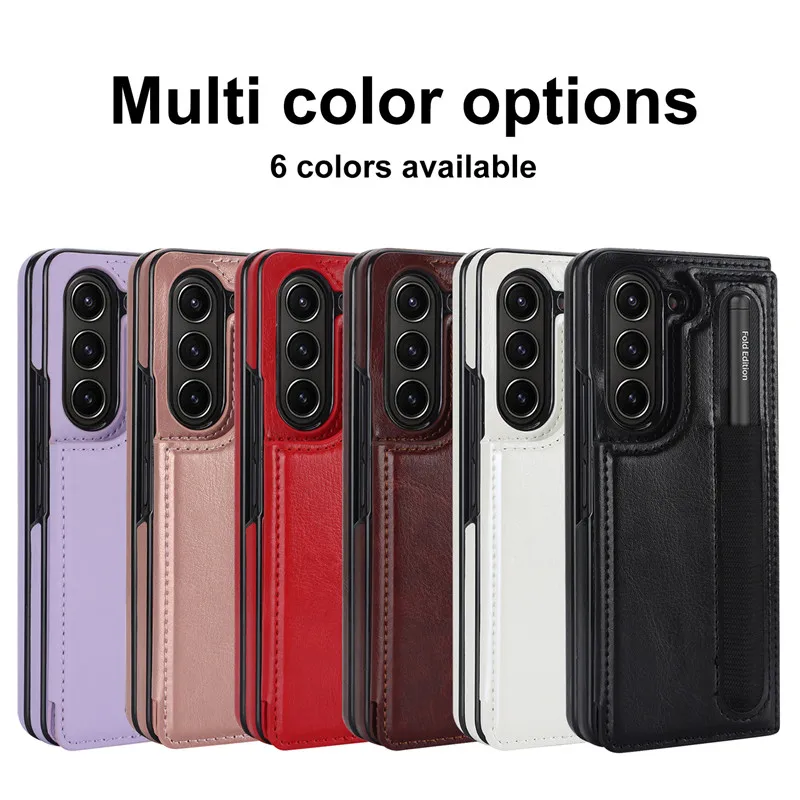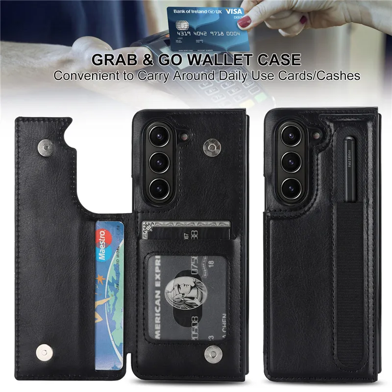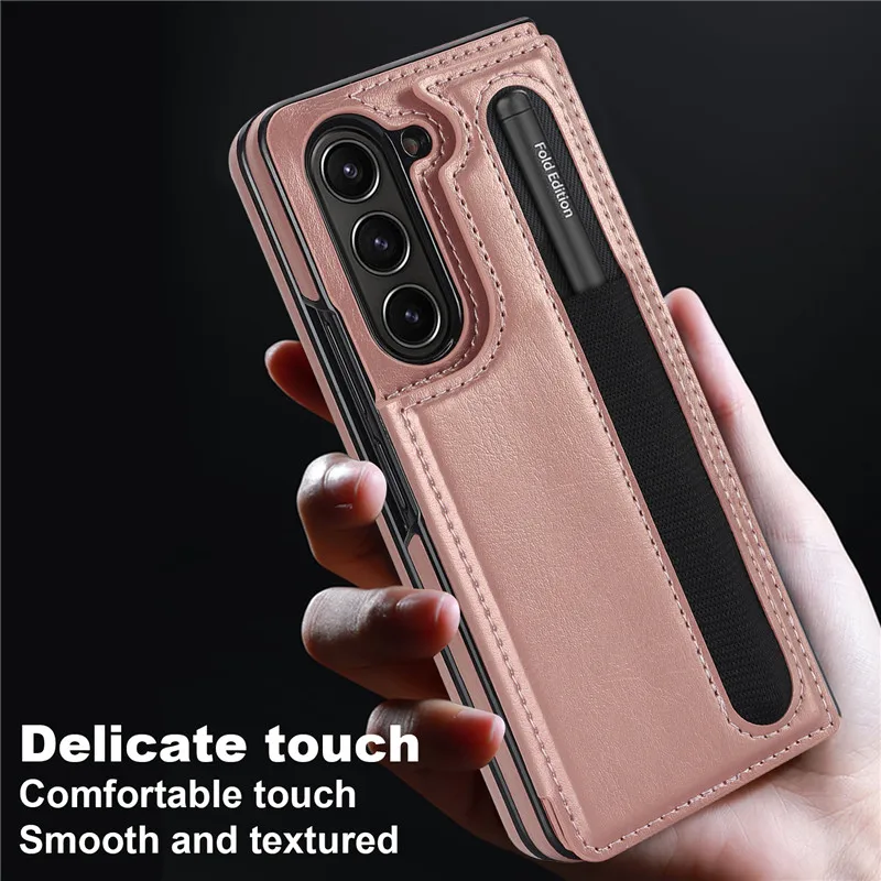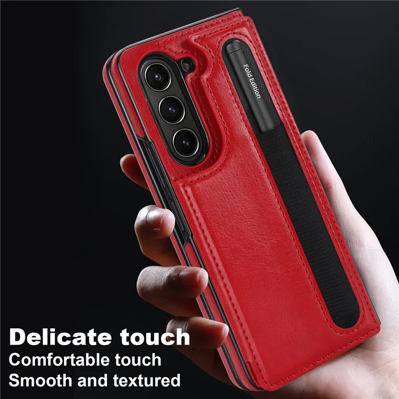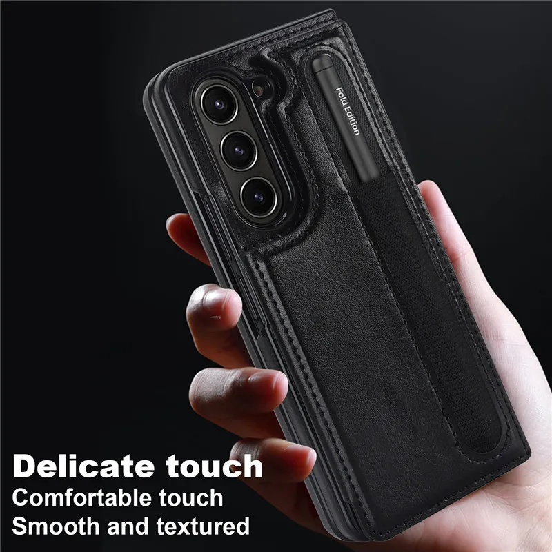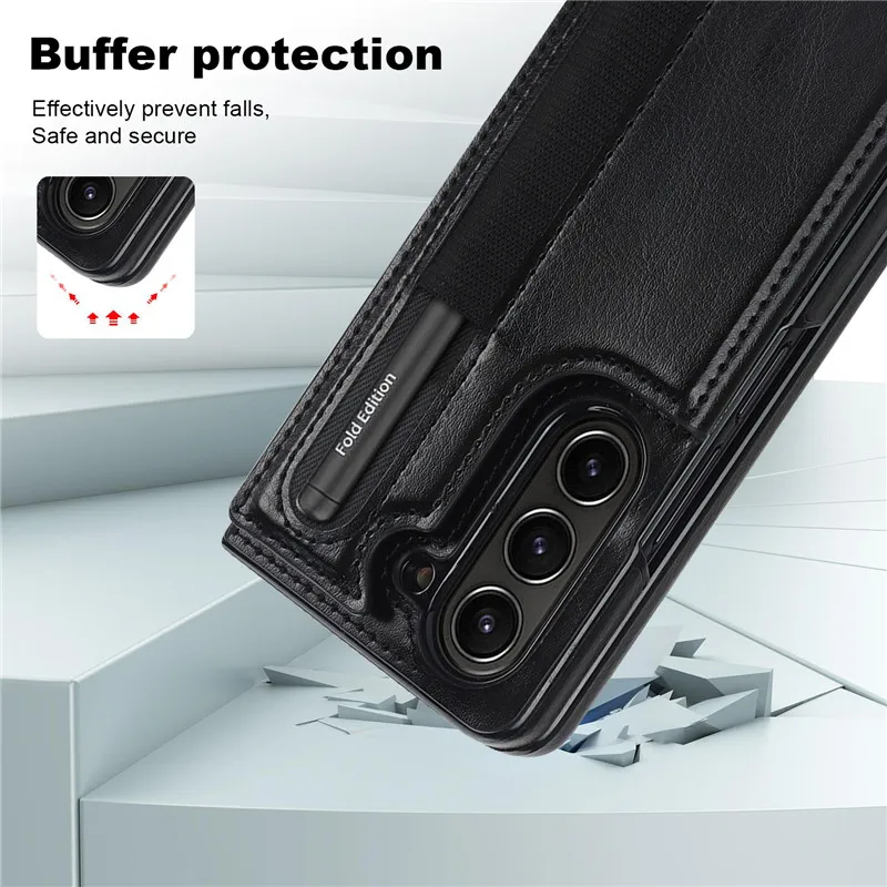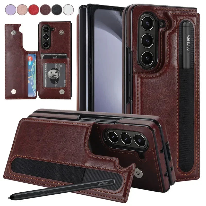 Pen Slot Leather Wallet Card Phone Case for Samsung Galaxy Z Fold 7 6 5 4 3 Fold6 Fold5 Fold4 Fold3 Retor Flip Stand Cover Etui