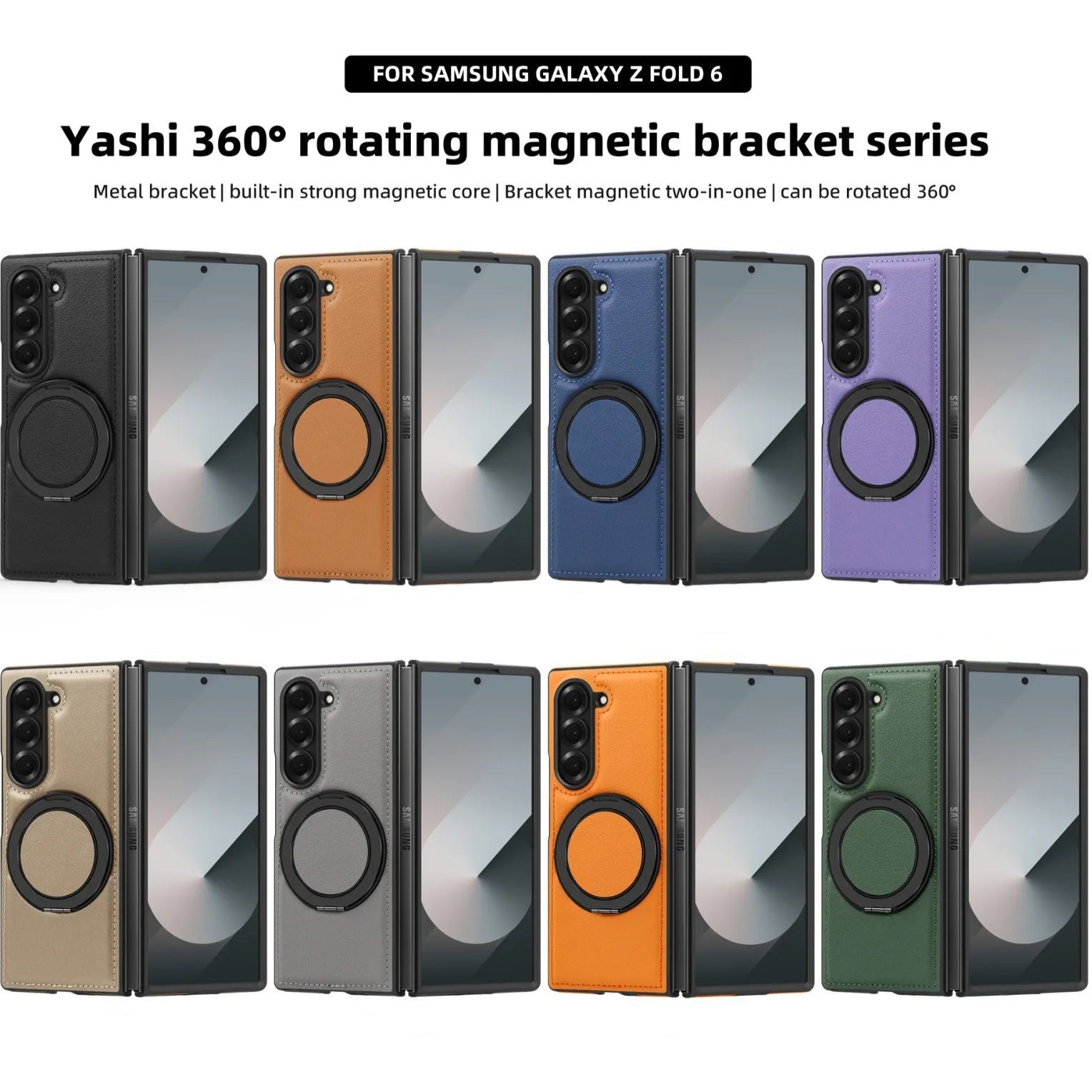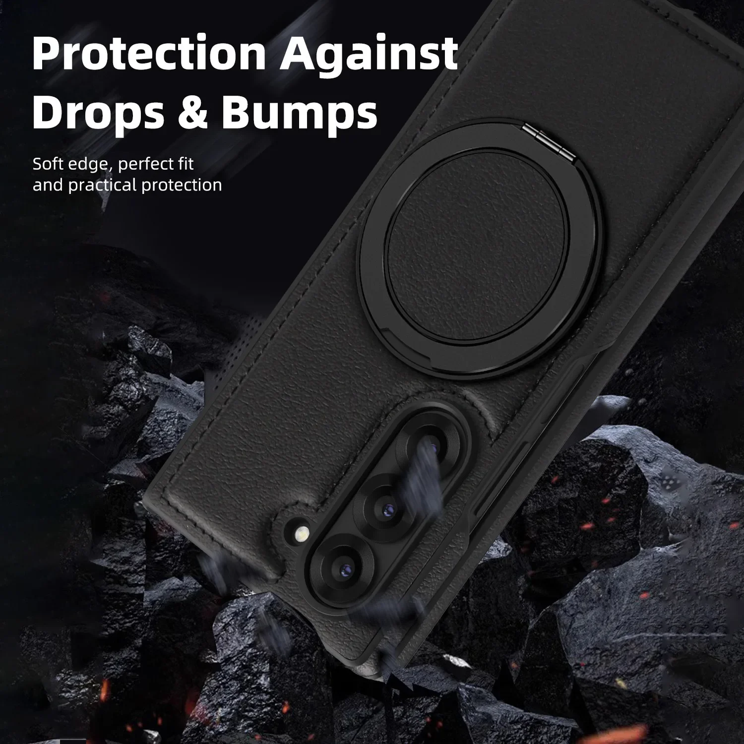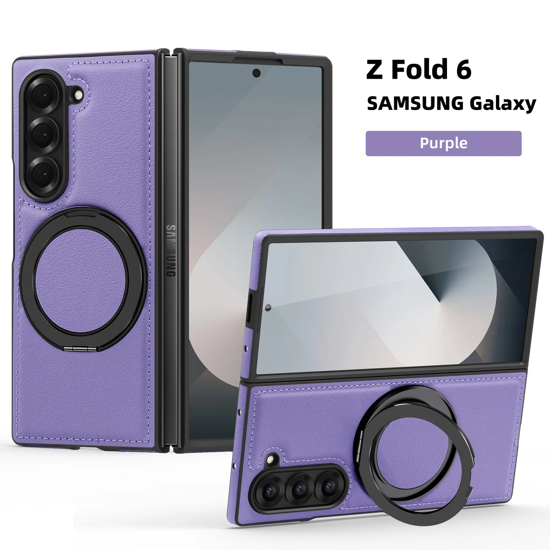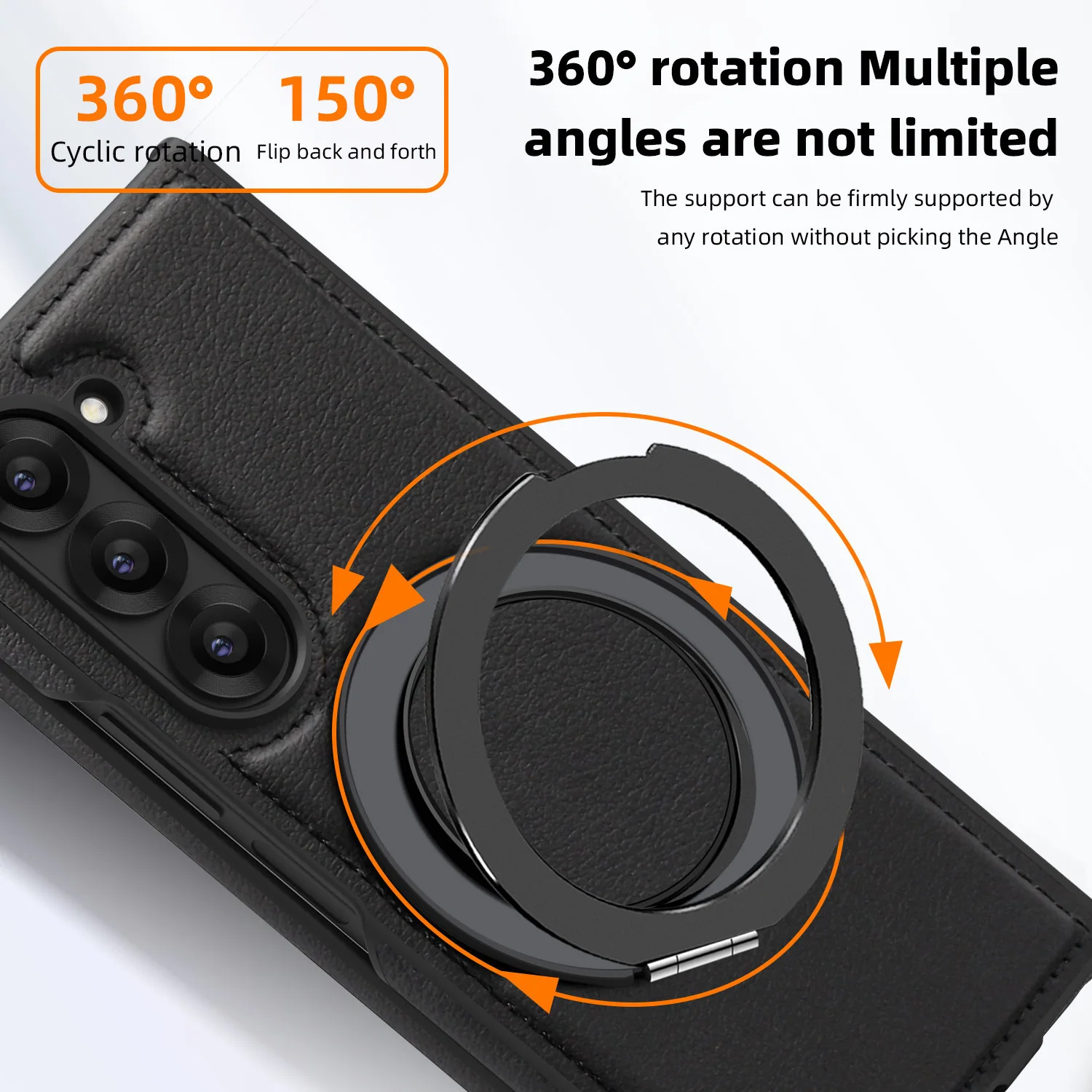 Phone Case for Samsung Galaxy Z Fold 7 Fold6 5 4 3 Strong Magnetic Ring&360 °rotating Bracket Wireless Charging Pu Leather Cover
