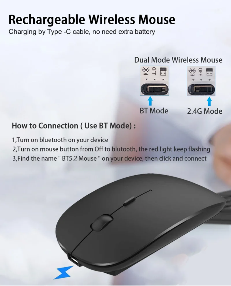 Both Keyboard and Mouse are Type C rechargeable, charging cable is included !!