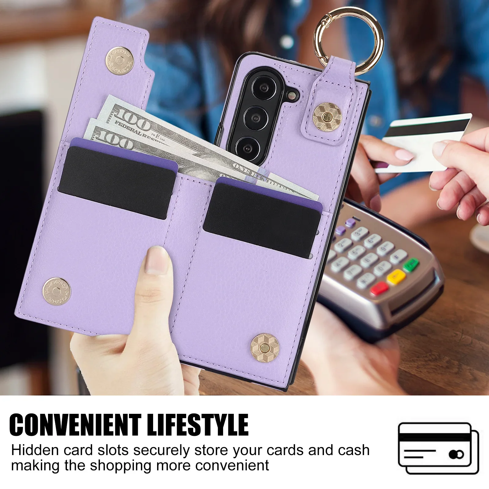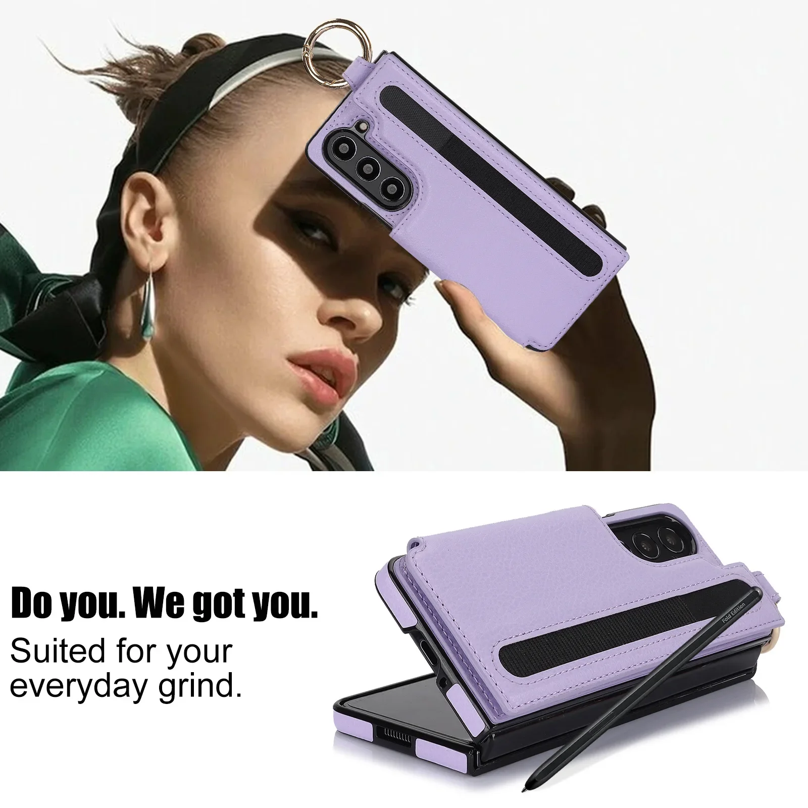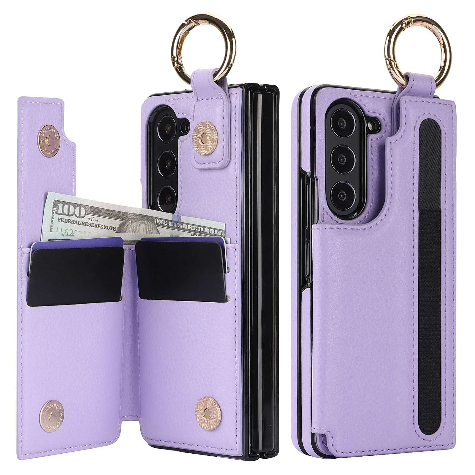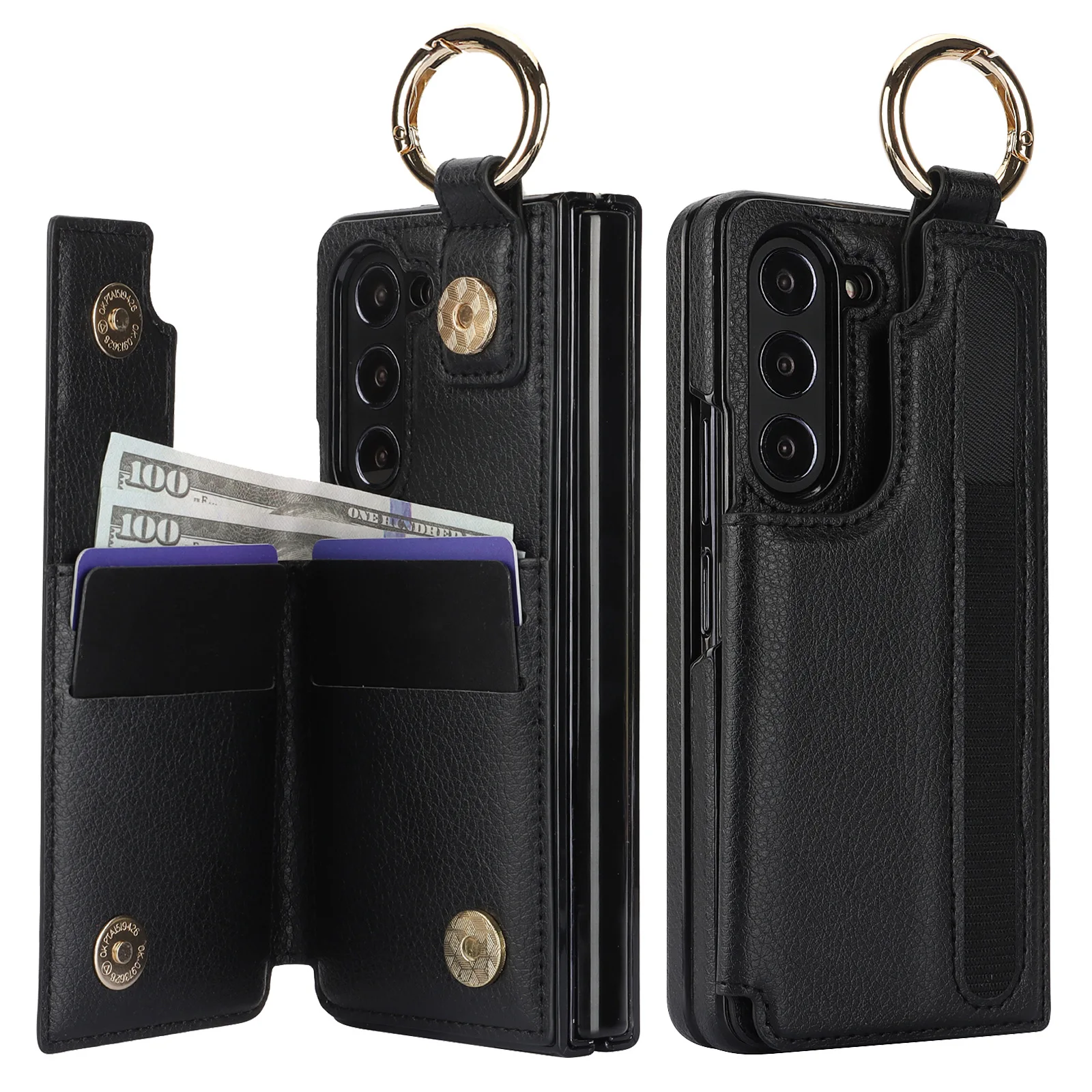 Z Fold 7 PU Leather Case – Ring & Pen Slot, Metal Buckle & Card Holder Wallet