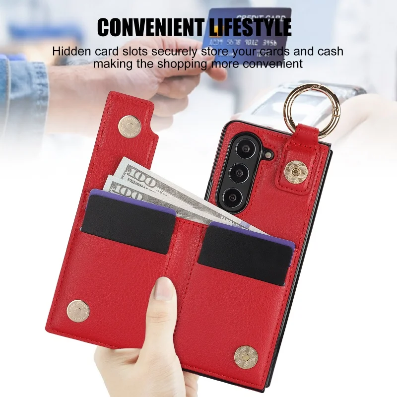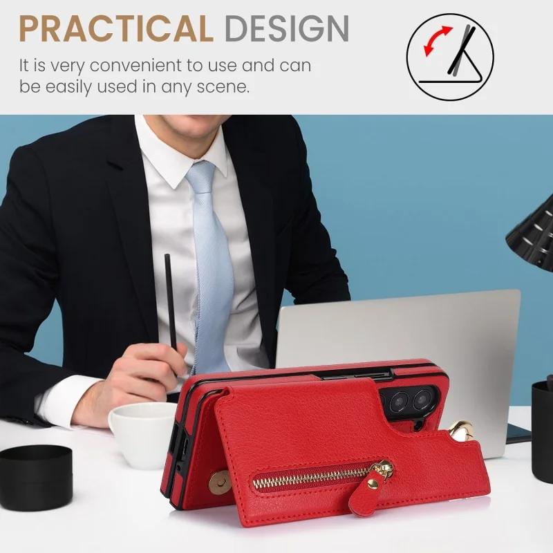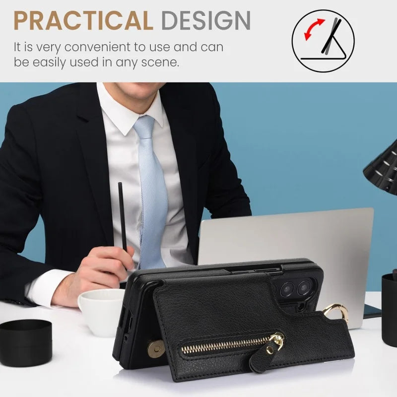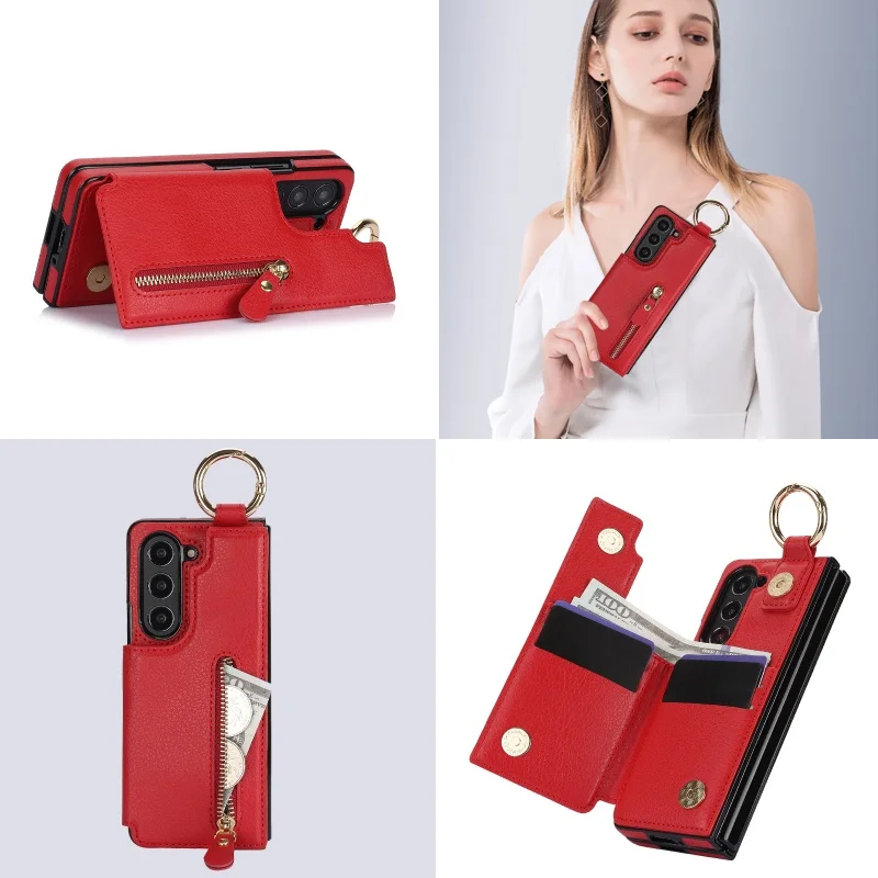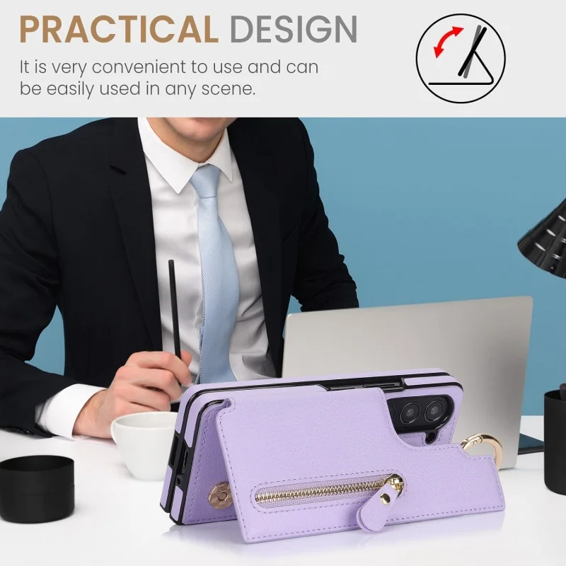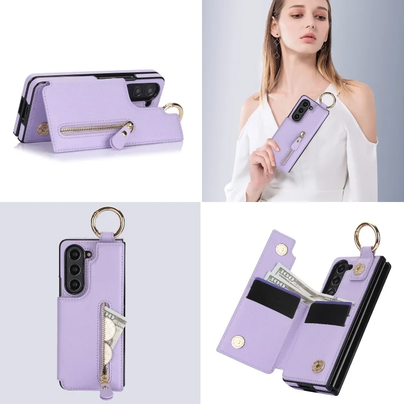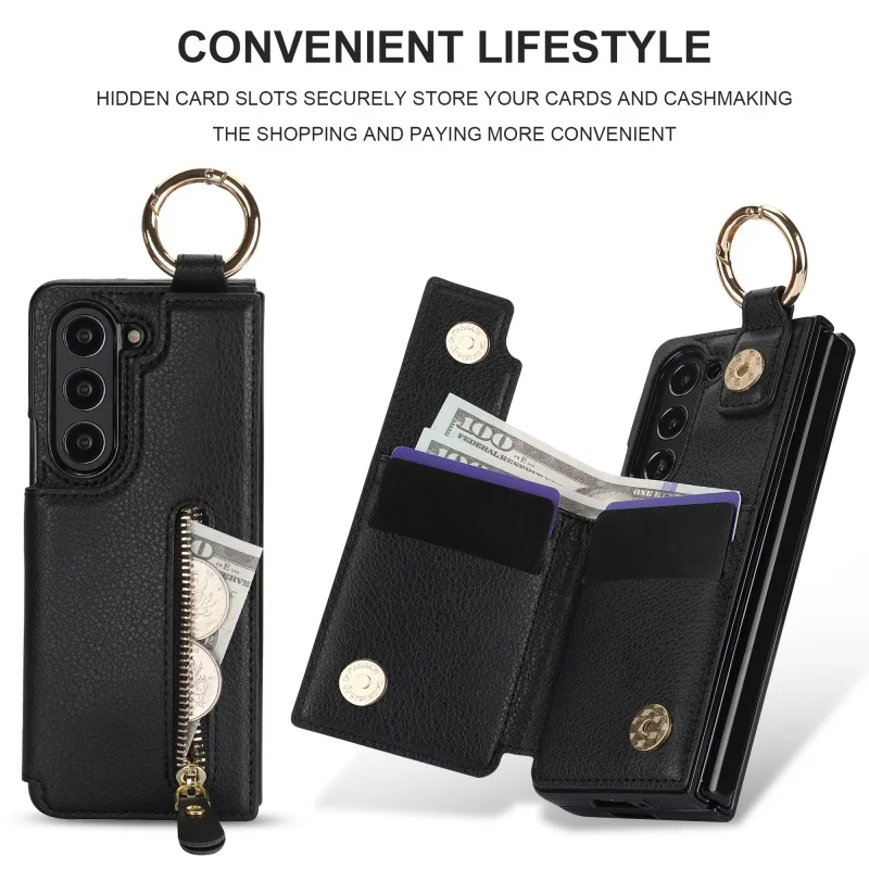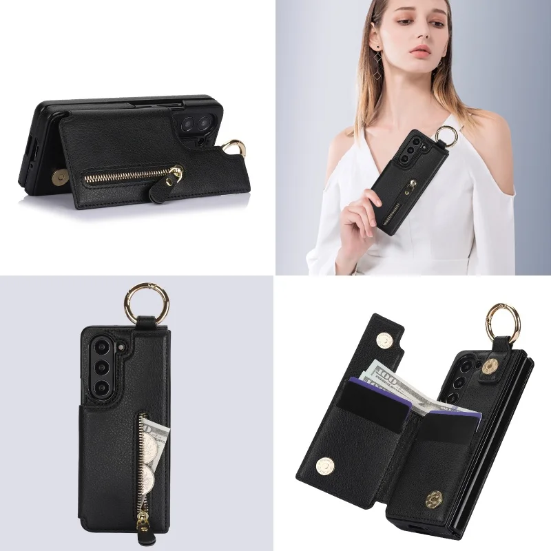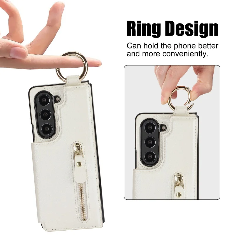 Ring Leather Zipper Wallet Card Slot Phone Case for Samsung Galaxy Z Fold 7 6 5 4 3 Shock Proof Flip Purse Holder Cover Hoesje