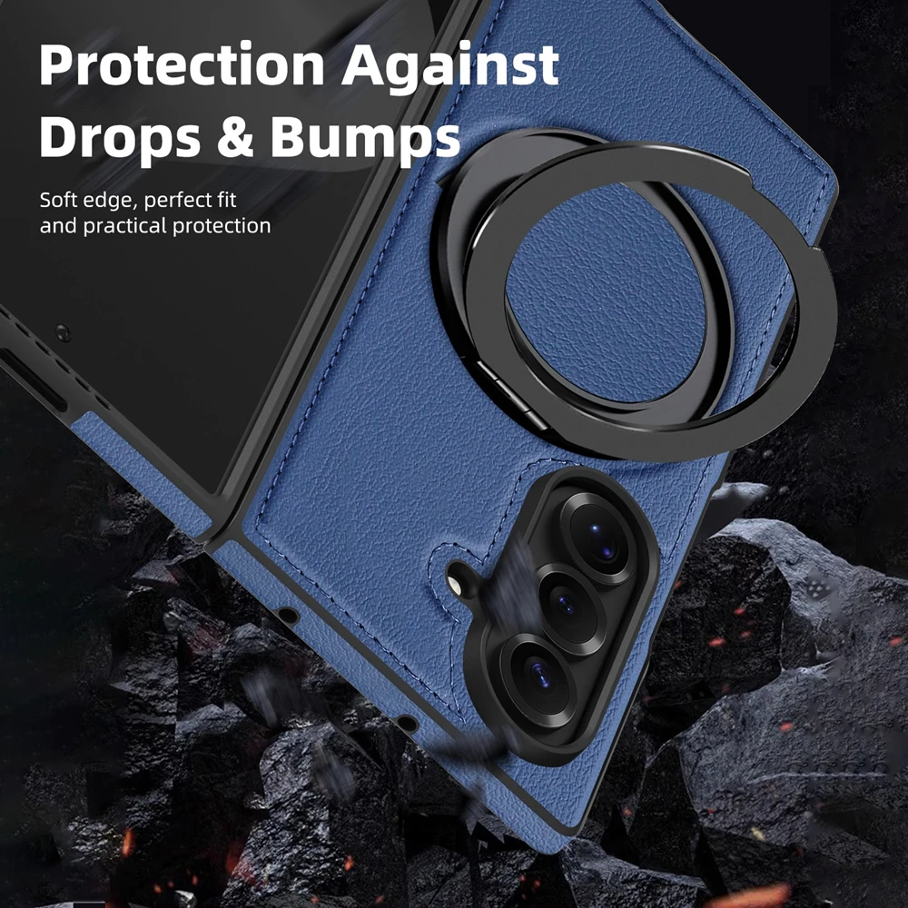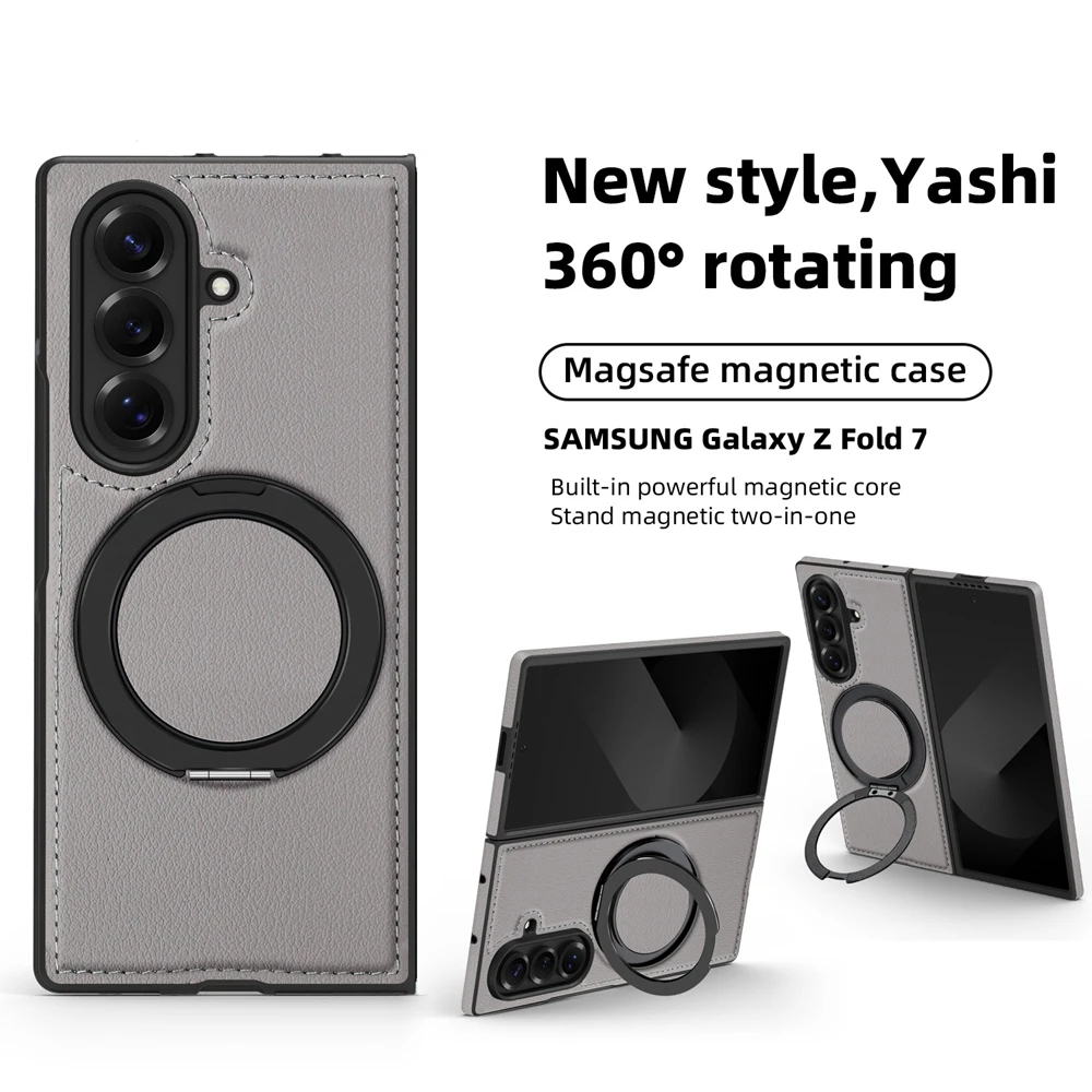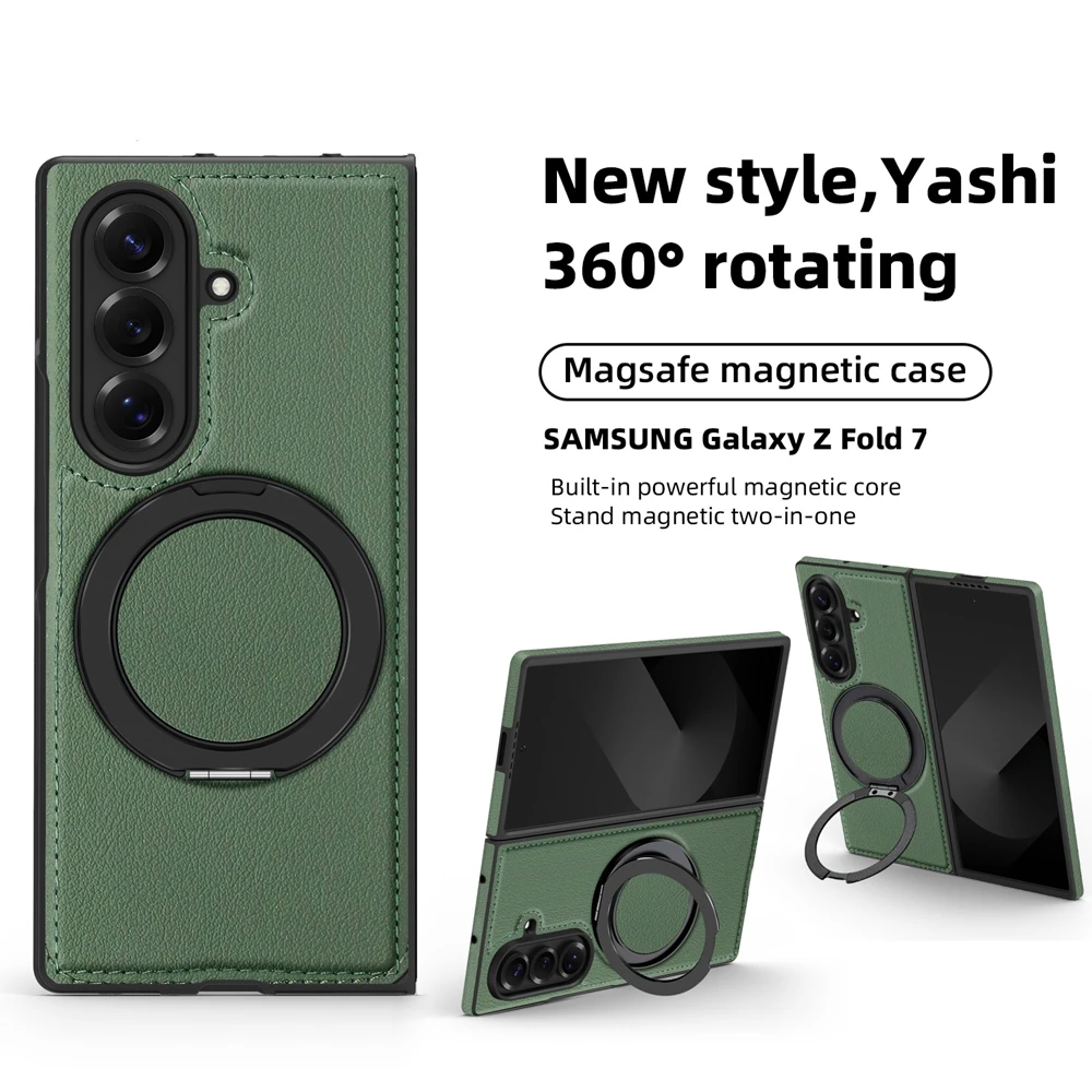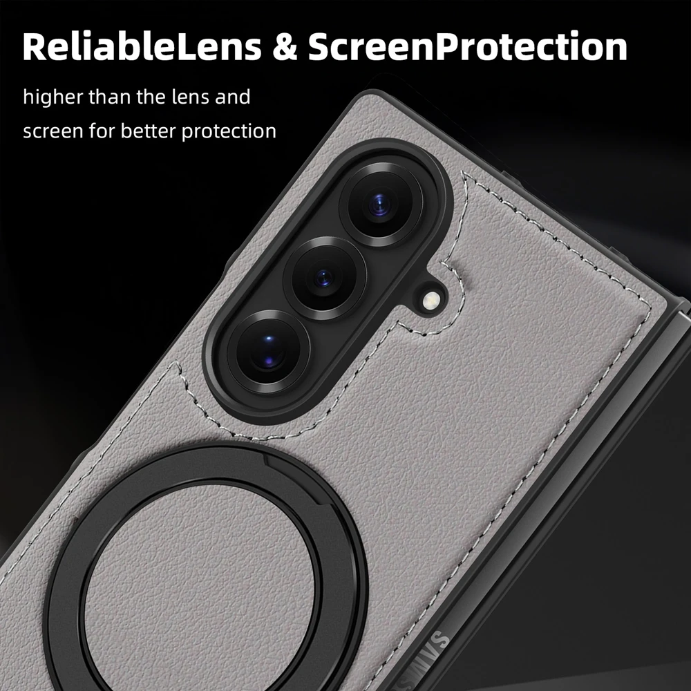 Ring Stand Magsafe Leather Case For Samsung Galaxy Z Fold 7 6 5 4 3 Z Fold7 Phone Case Magnetic Phone Cover Wireless Charging