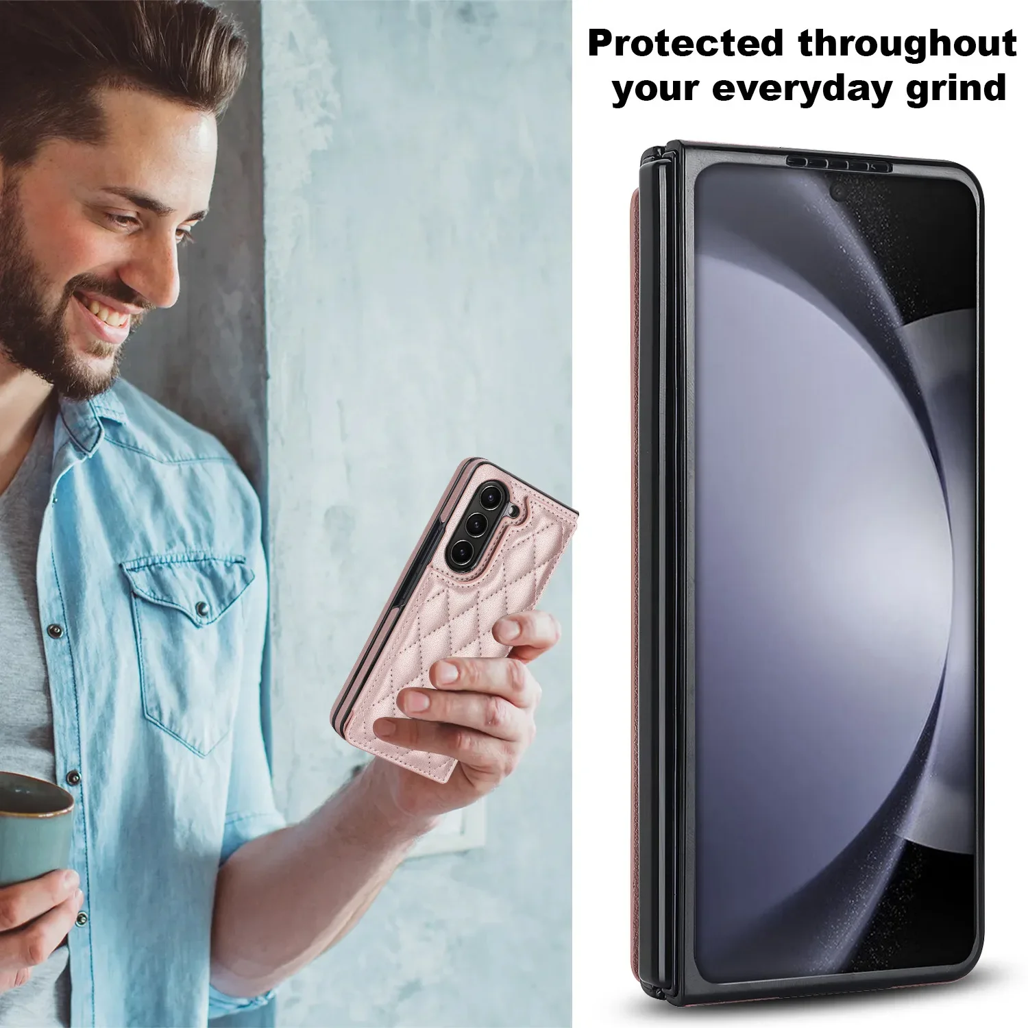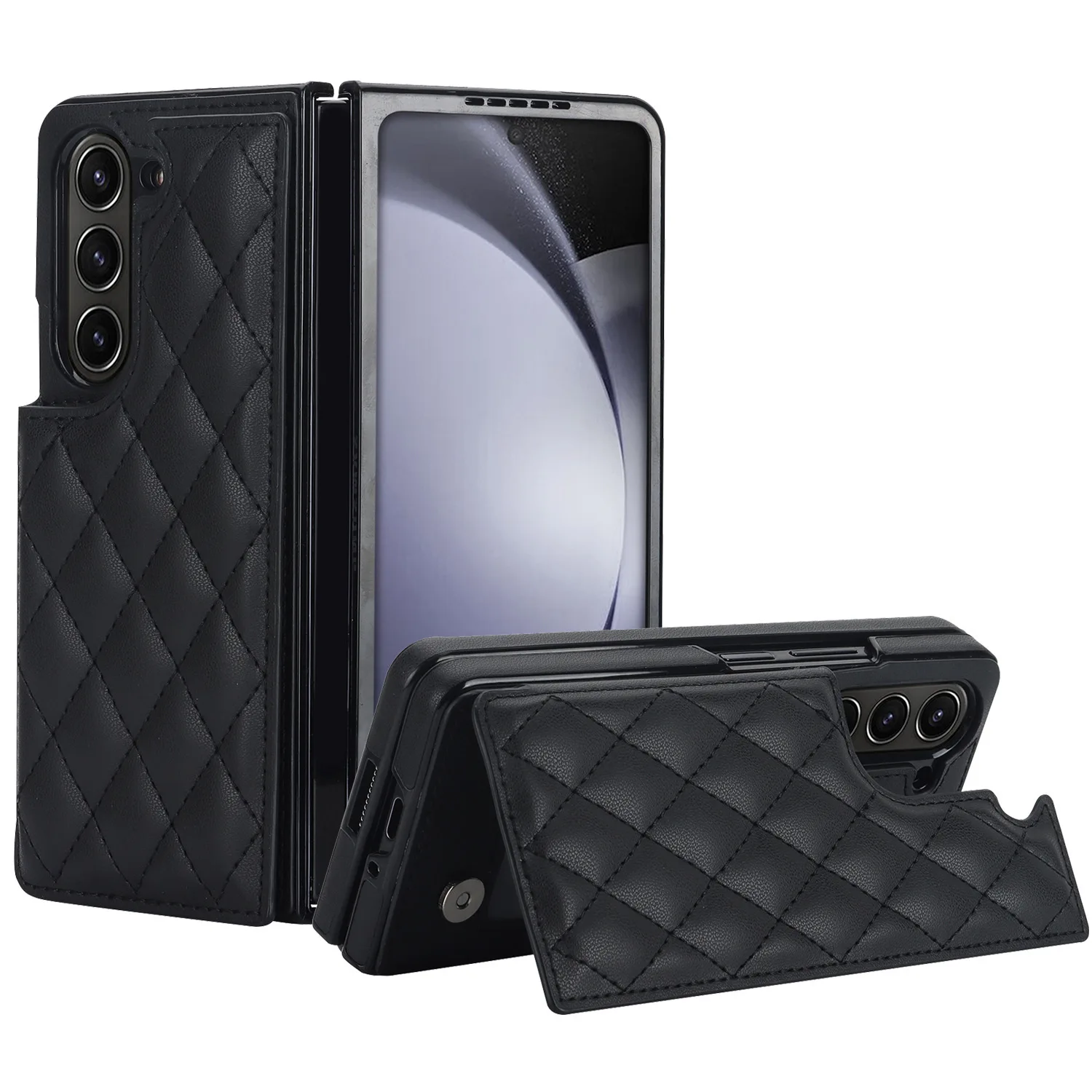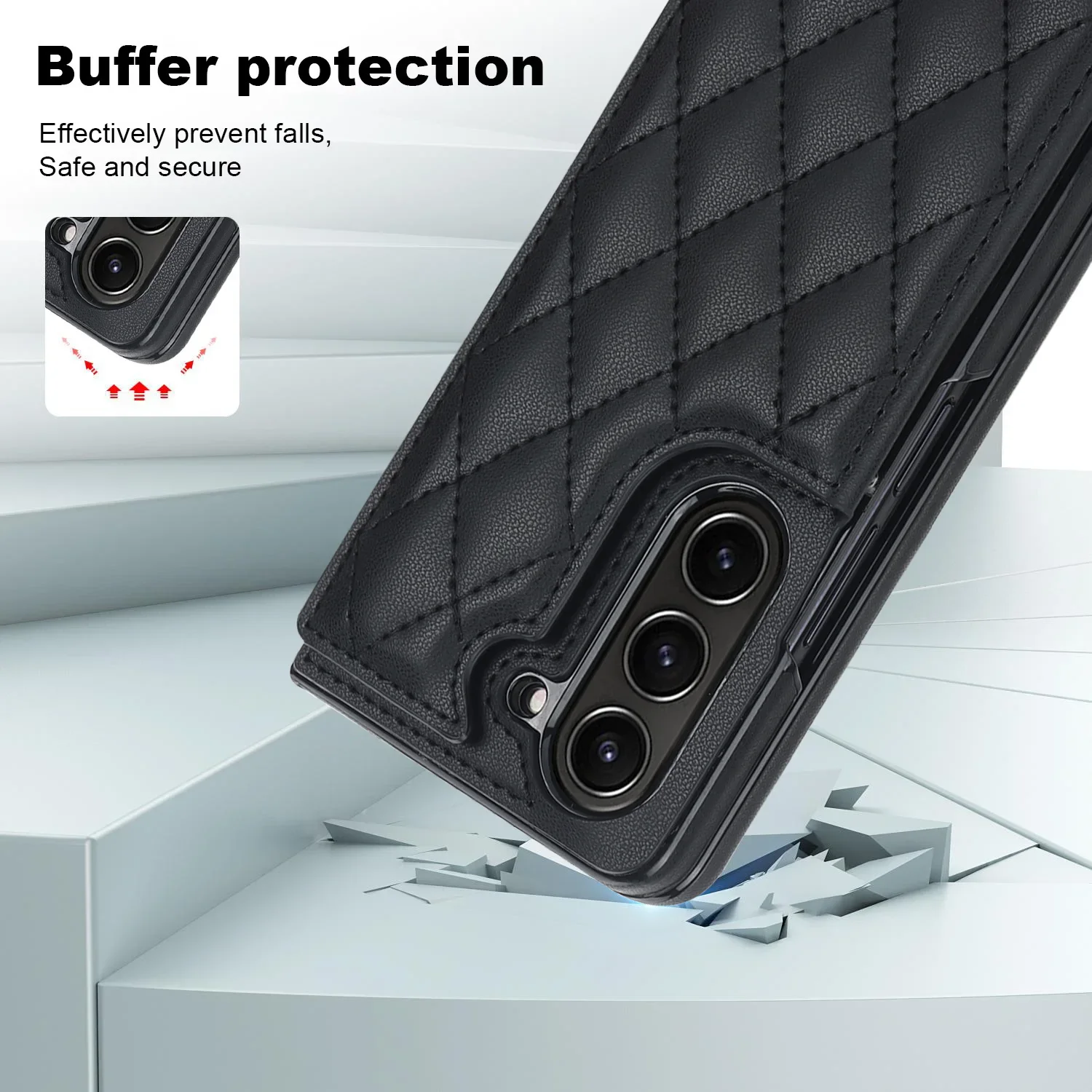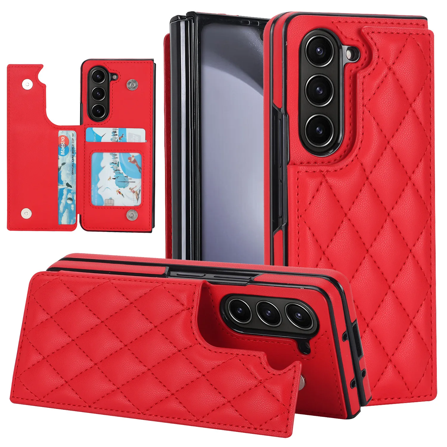 Z Fold 7/6/5 Double Button Wallet Case – Card Holder & Diamond Grid PU Leather