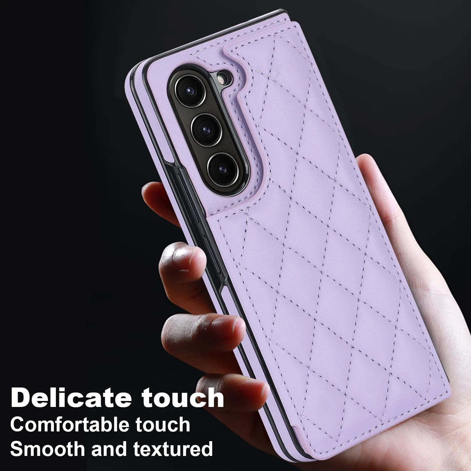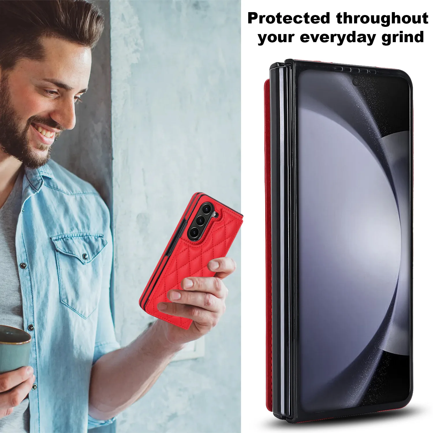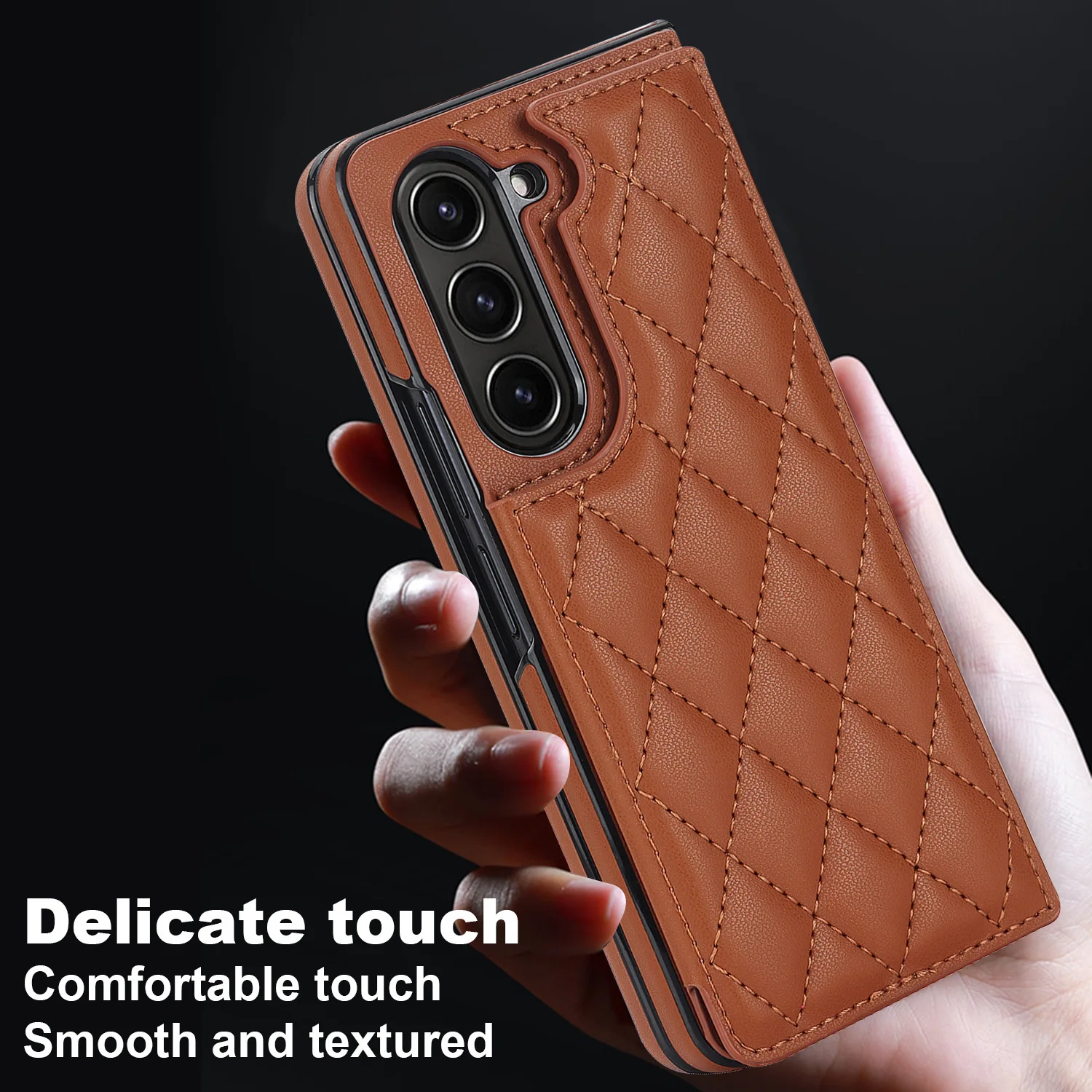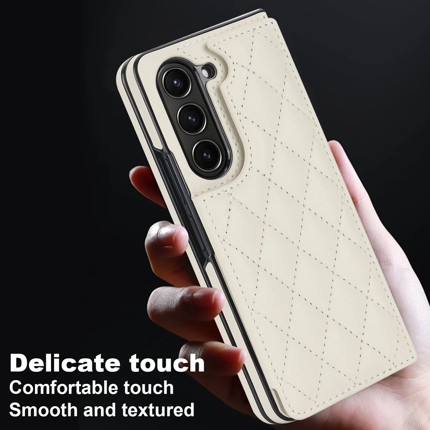 Z Fold 7/6/5 Double Button Wallet Case – Card Holder & Diamond Grid PU Leather