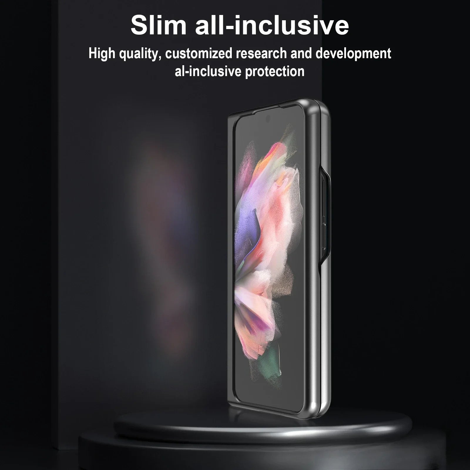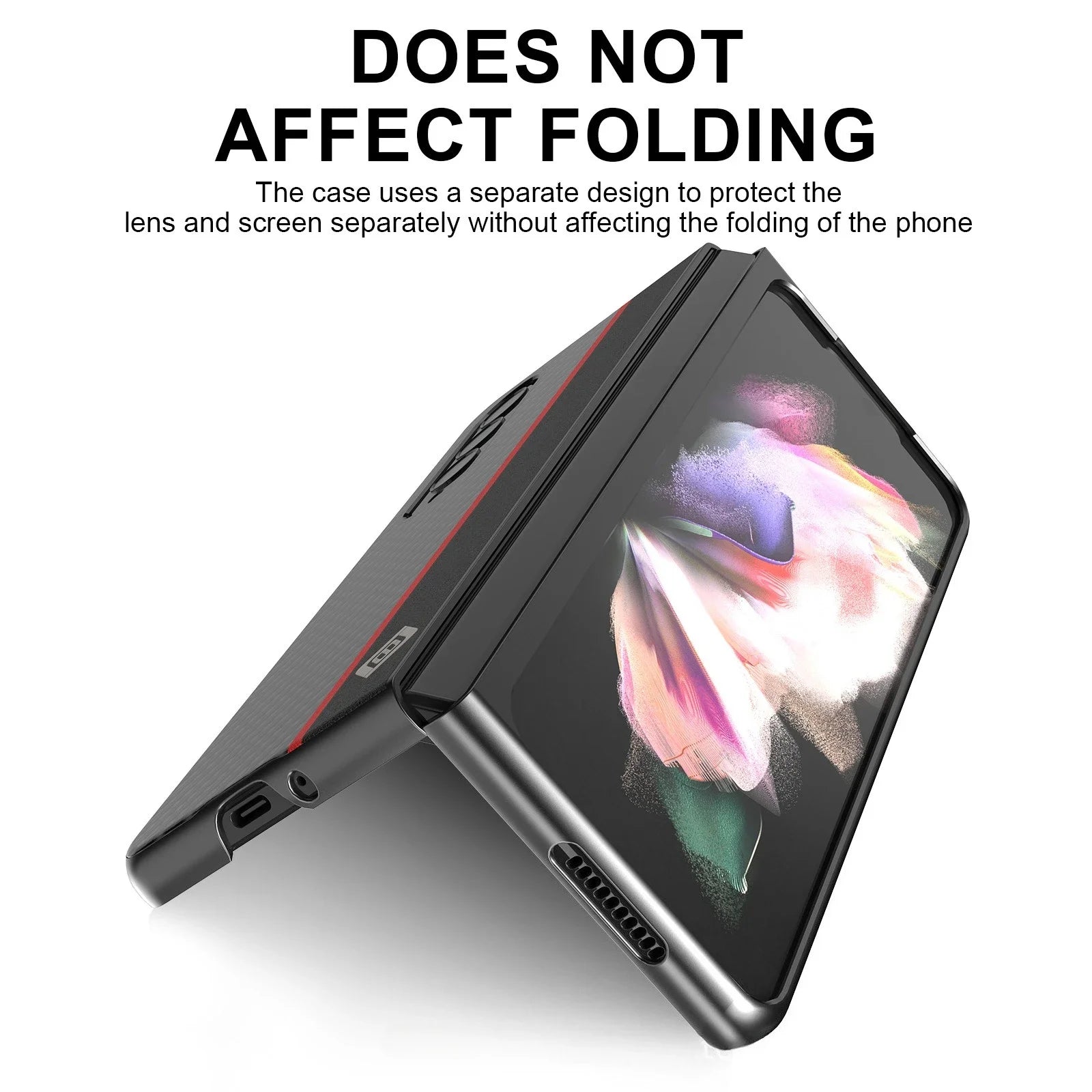 ZFold 7 Phone Case for Samsung Galaxy Z Fold 7 Fold6 5 4 3 5G Carbon Fiber Red Vertical Stripes PU Leather Slim Protective Cover